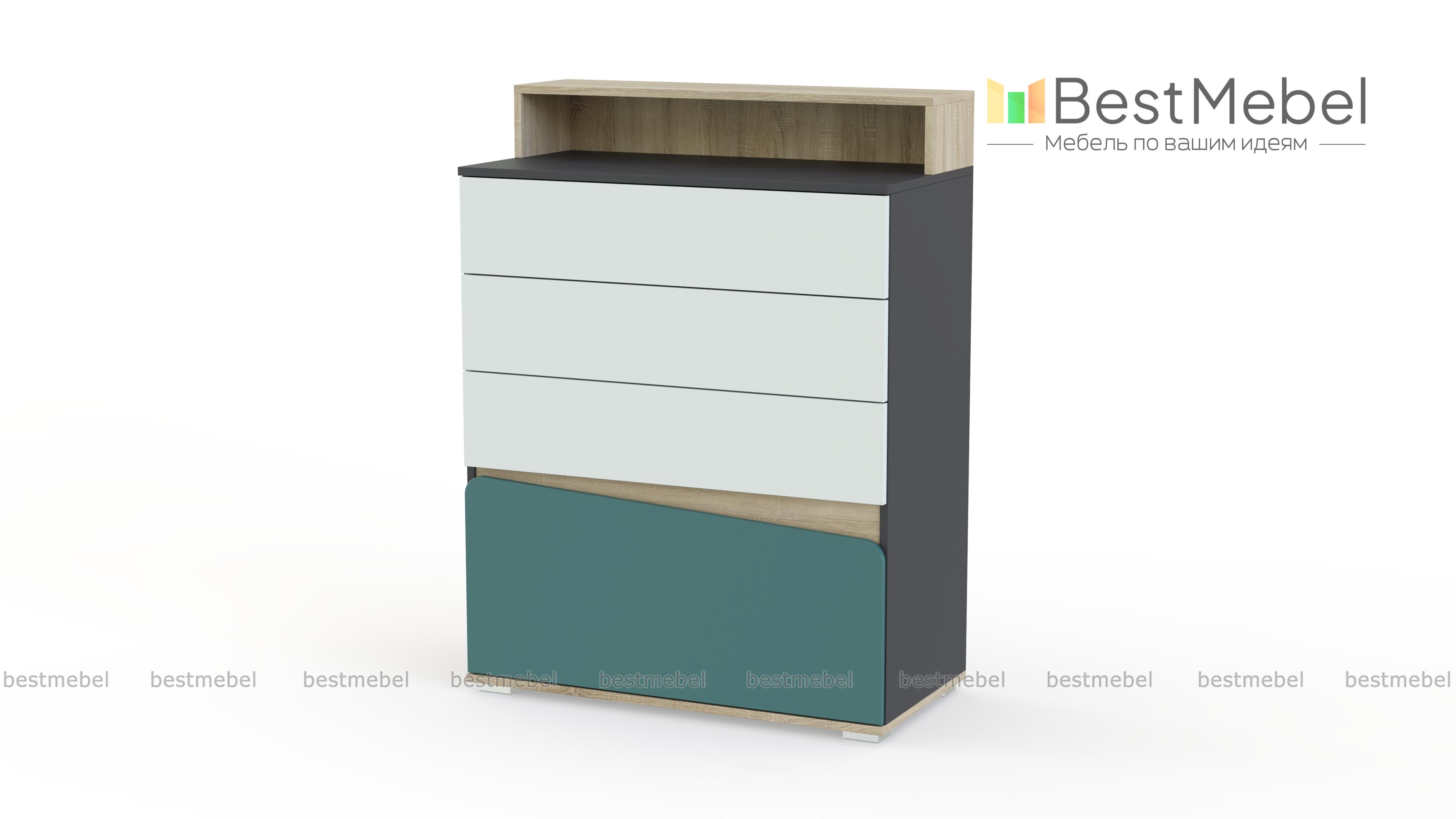 Комод для детской Алиса BMS отличается ярким дизайном и функциональностью. Четыре выдвижных ящика разной высоты и широкая столешница с надстройкой помогут легко поддерживать в комнате порядок и компактно разместить постельное белье, одежду в сложенном виде, аксессуары и множество мелочей. Комод выполнен в белом цвете с контрастными вставками, фасад нижнего ящика асимметрично вырезан и скруглен по краям. Купить комод для детской Алиса BMS и дополнить систему хранения практичным предметом вам поможет наш интернет-магазин.