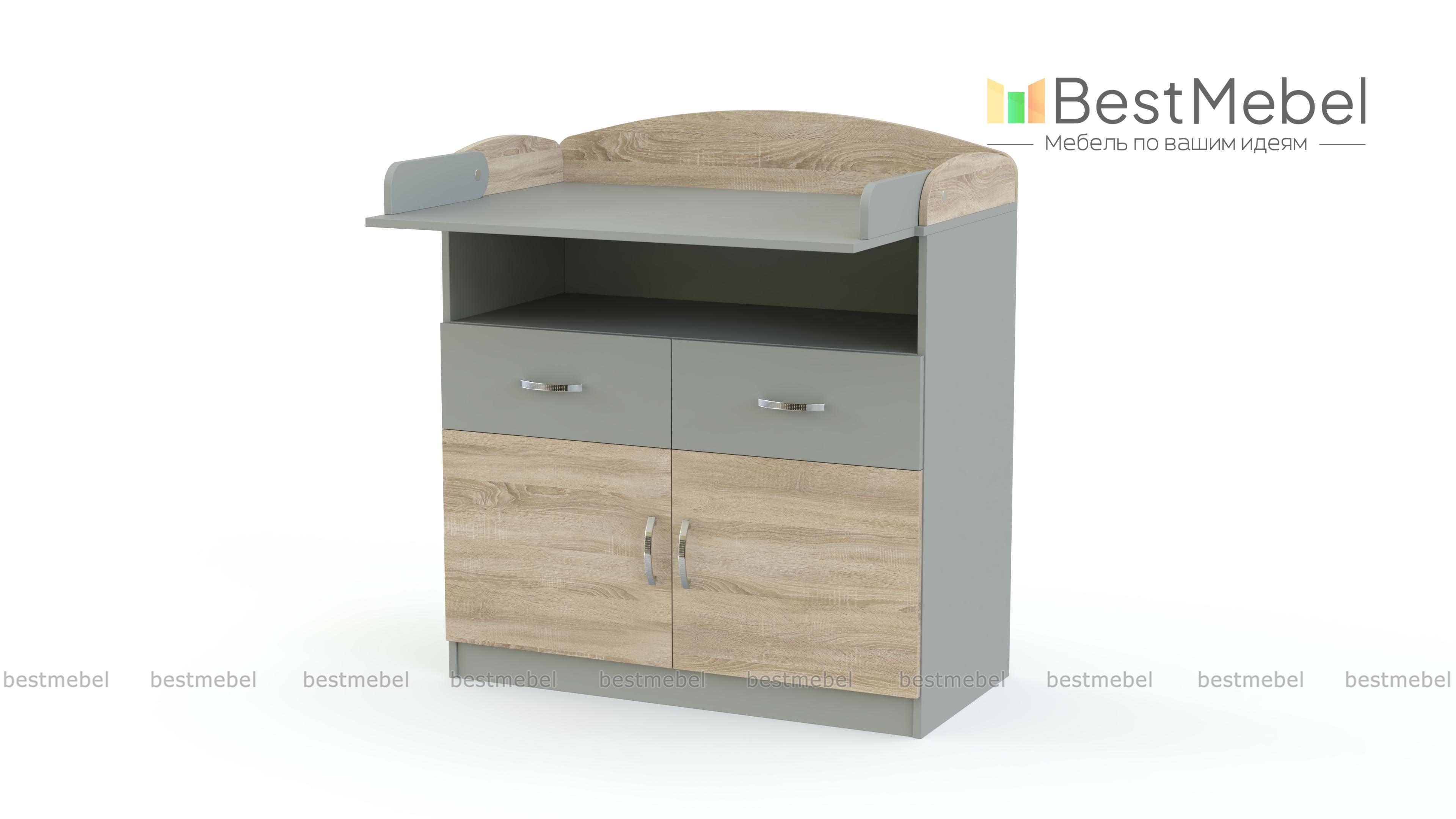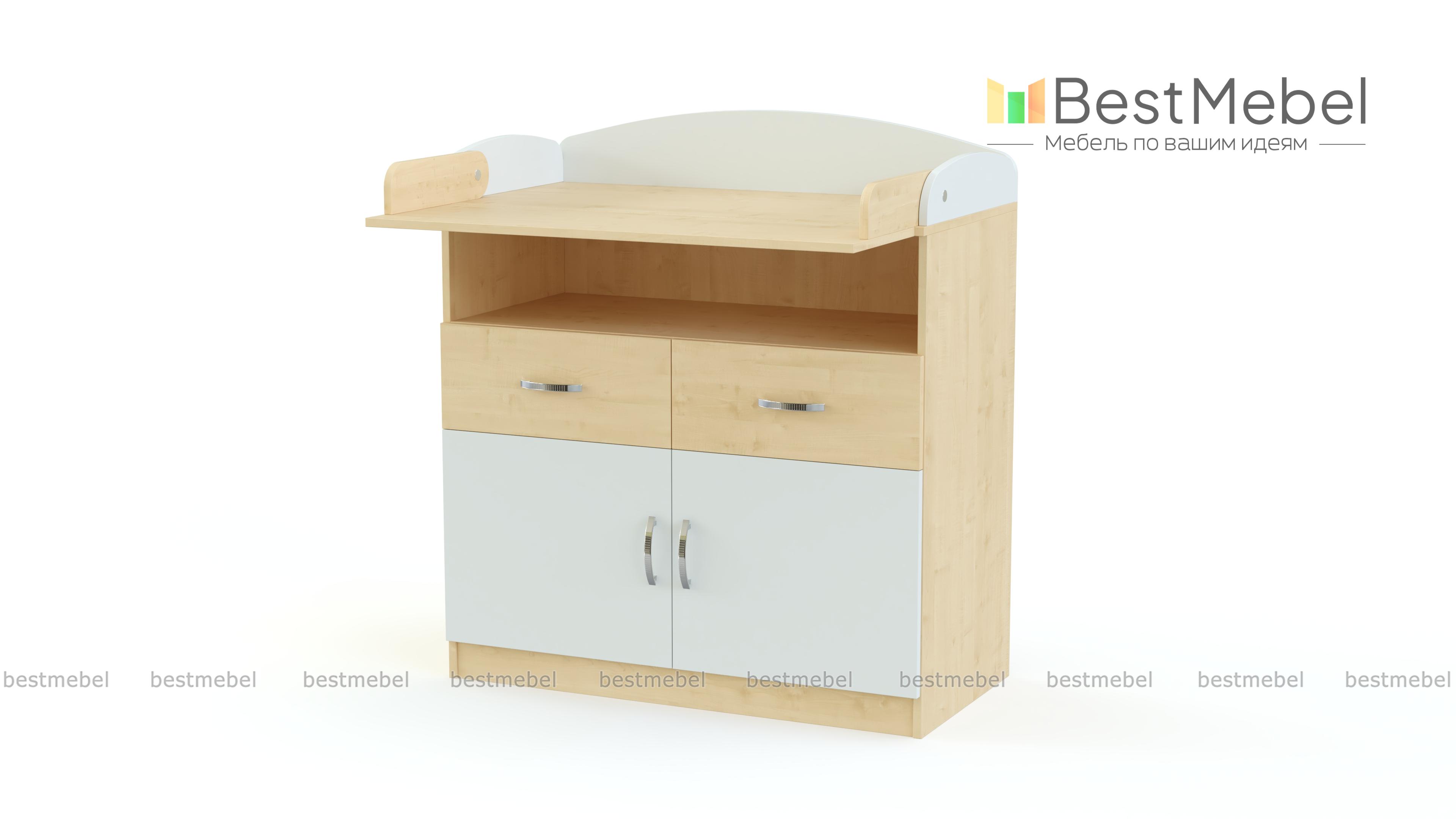 Комод пеленальный Натан 7 BMS выполнен из качественной ламинированной плиты, лаконичен и функционален. Комфортная для малыша пеленальная поверхность закрыта полукруглыми бортиками и легко увеличивается с помощью откидного столика. Для хранения детских вещей и средств гигиены предусмотрены просторная ниша, два выдвижных ящика и двухдверное распашное отделение. Купить комод пеленальный Натан 7 BMS вы сможете в нашем интернет-магазине, подобрав фурнитуру и цвет по каталогу.
