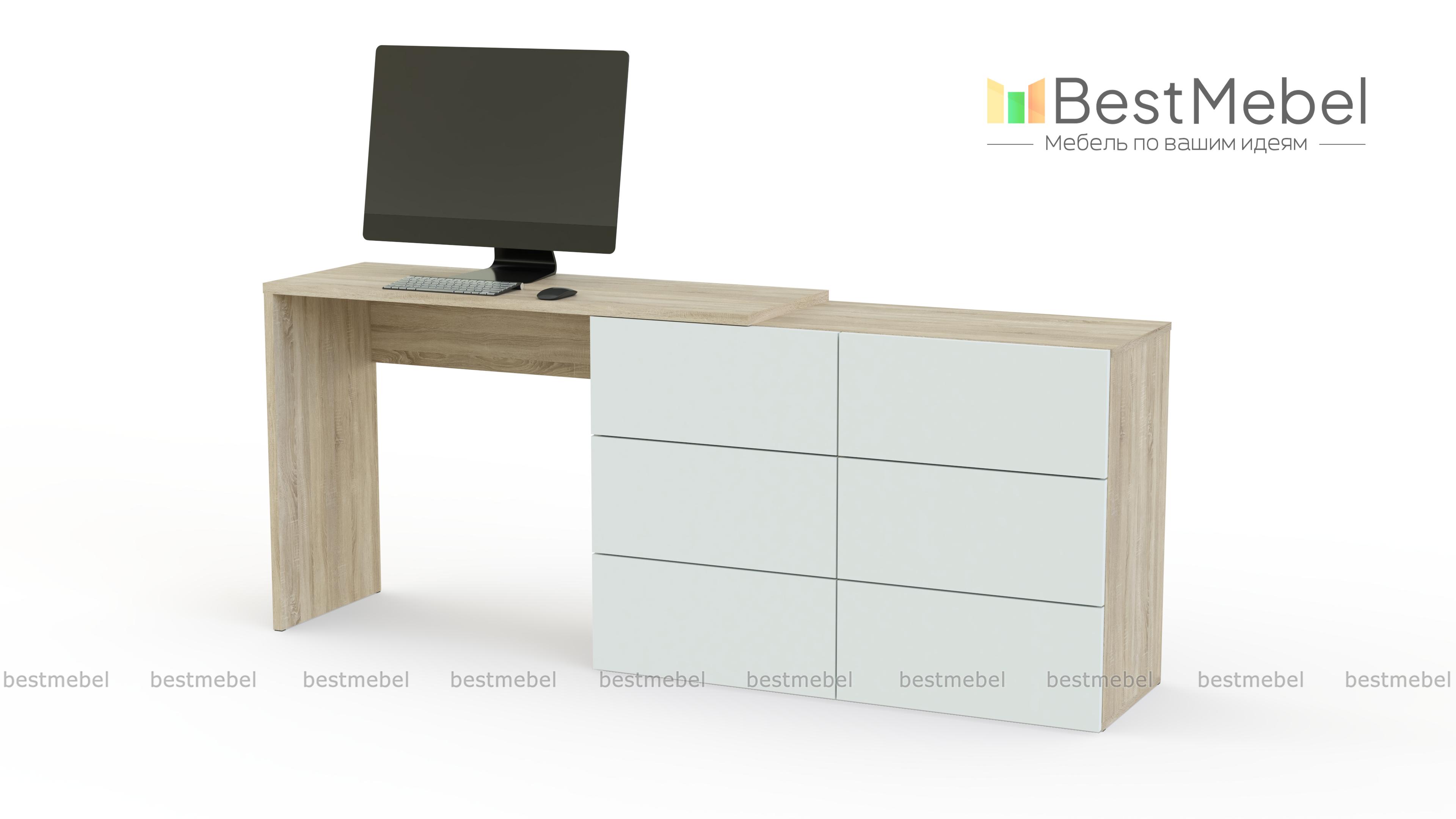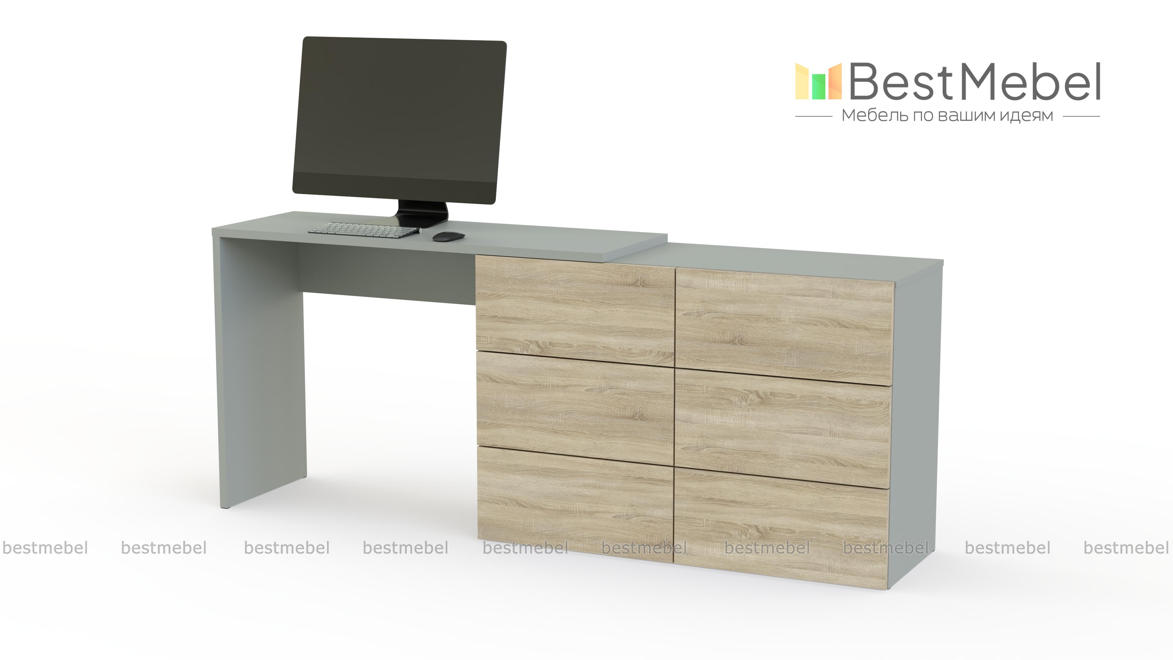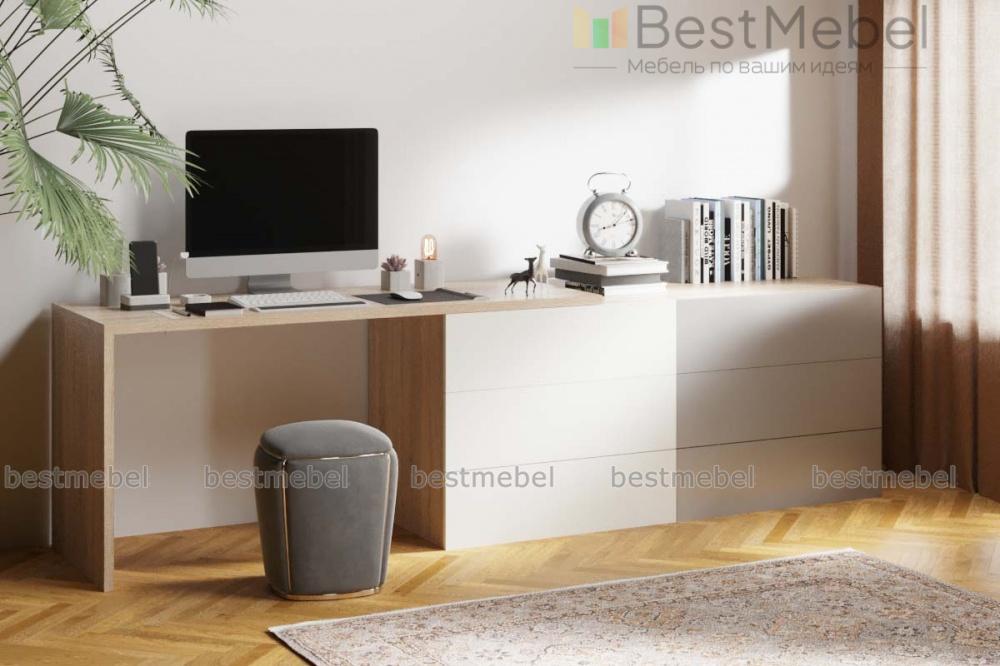 Комод со столом Капри BMS – лаконичный и выполненный в актуальных оттенках, станет практичным дополнением современного спального интерьера. Линейная модель представляет собой бельевой комод с шестью выдвижными ящиками, совмещенный с удобным для работы за ноутбуком столом. Многофункциональная композиция позволит вам сэкономить пространство, оформить телезону и выигрышно представить предметы декора. Купить комод со столом Капри BMS по выгодной цене приглашаем к нам в интернет-магазин.