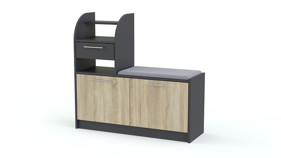 Обувница Лаф 3 BMS – это модель комбинированного типа, которая позволит максимально эффективно использовать пространство небольшой прихожей. Тумба оборудована просторным распашным отделением для хранения обуви и надстройкой с открытой полочкой, выдвижным ящиком и нишами для мелочей. Важным дополнением обувницы станет сиденье с мягкой обивкой в износостойкой ткани. Купить обувницу Лаф 3 BMS вы сможете в нашем интернет-магазине, подобрав оптимальное цветовое решение.
