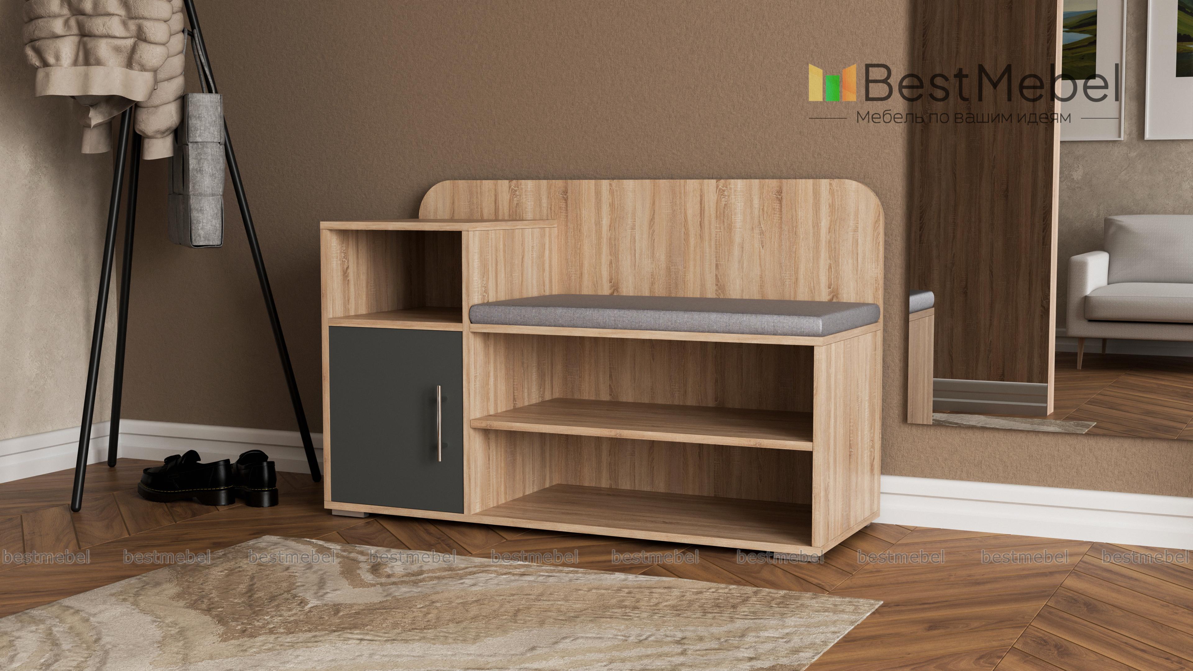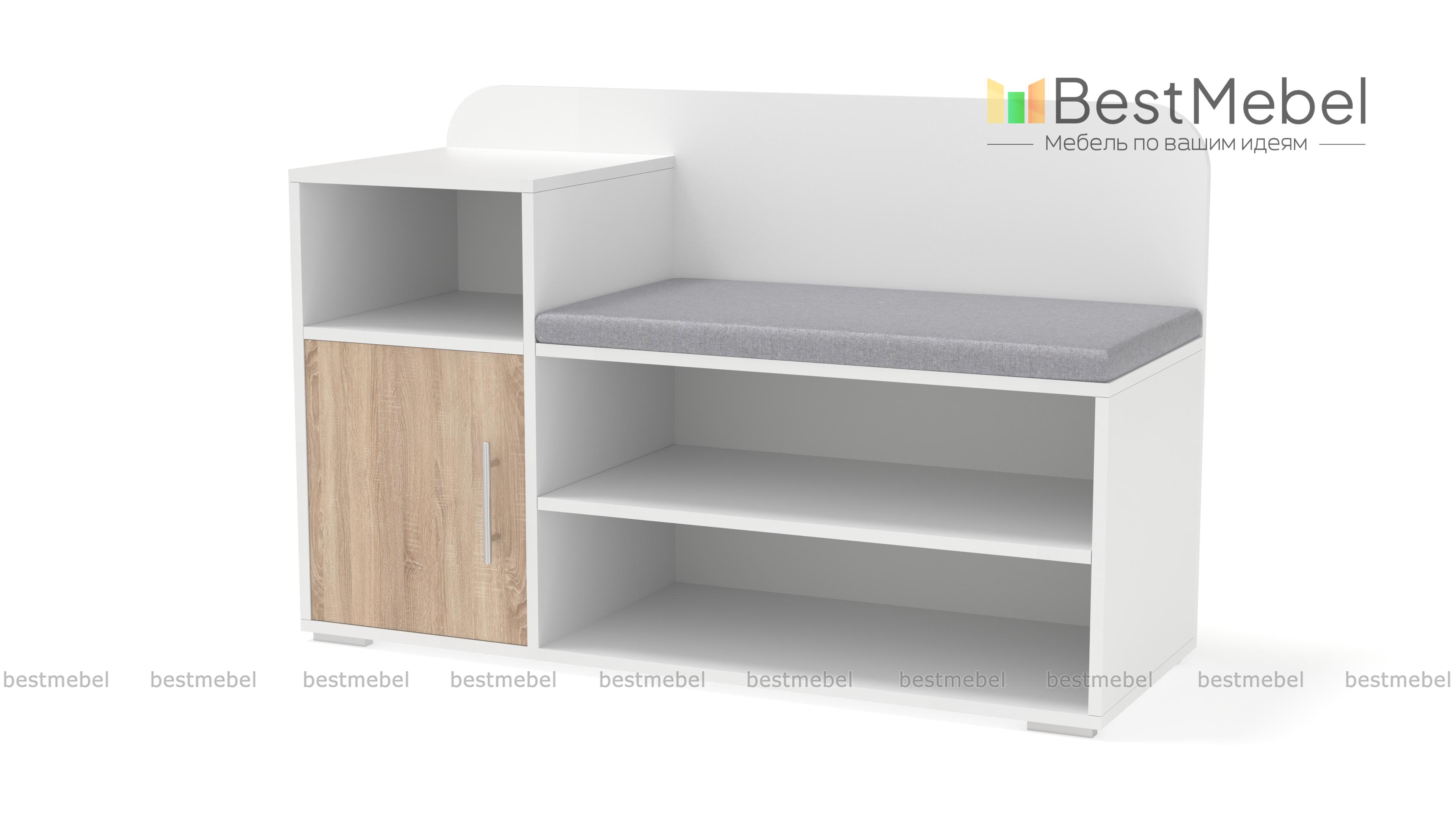 Обувница Лани BMS – экономичное решение для меблировки входной зоны, в котором сочетаются простота конструкции и функциональность. Комбинированная модель оборудована открытыми полками для хранения повседневной обуви, распашным шкафчиком и нишей для уходовых средств, комфортным сиденьем с мягкой тканевой обивкой и скругленной по углам спинкой. Легко вписаться в современный интерьер поможет актуальная черно-белая гамма. Купить обувницу Лани BMS приглашаем недорого в наш интернет-магазин.