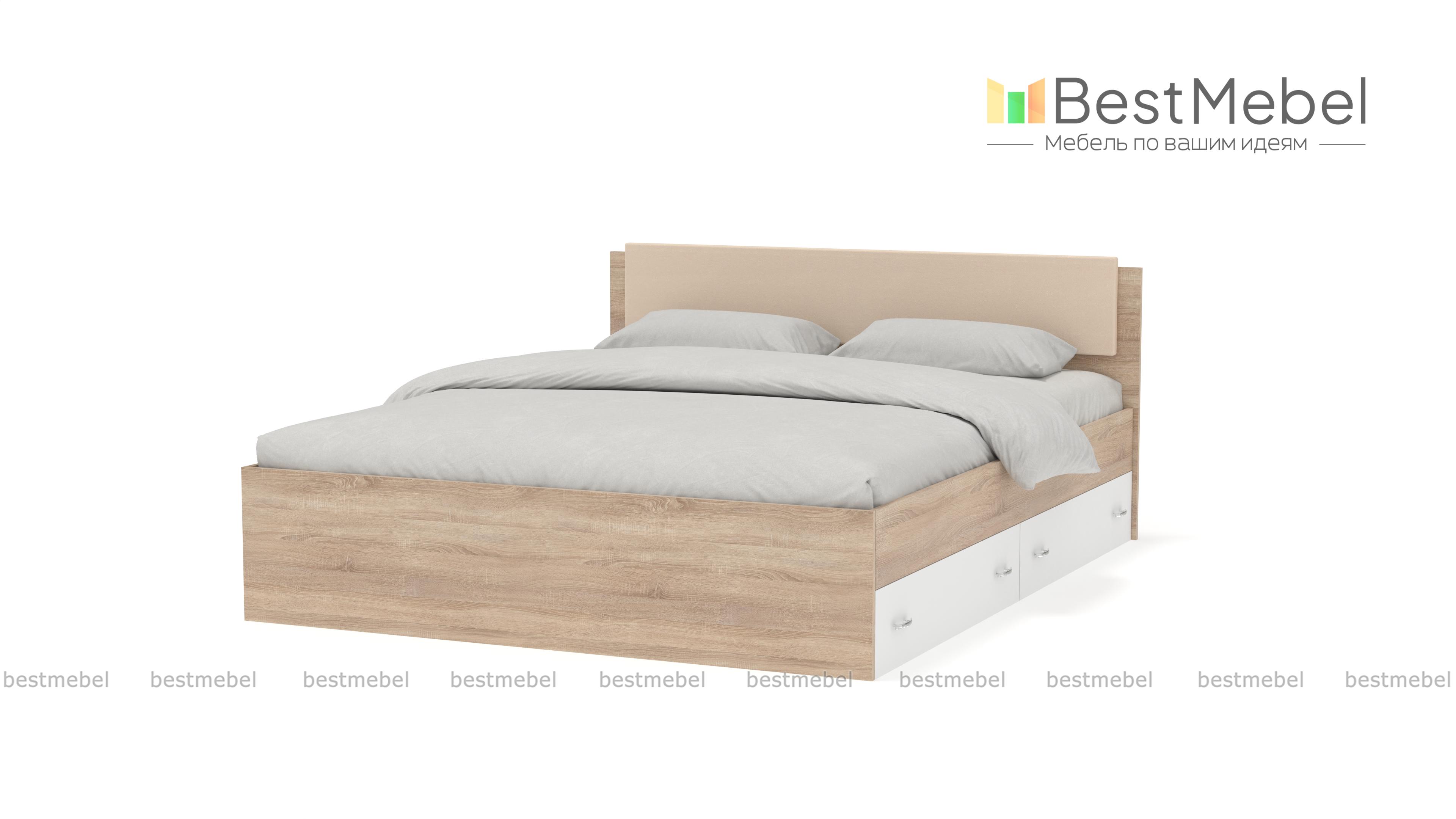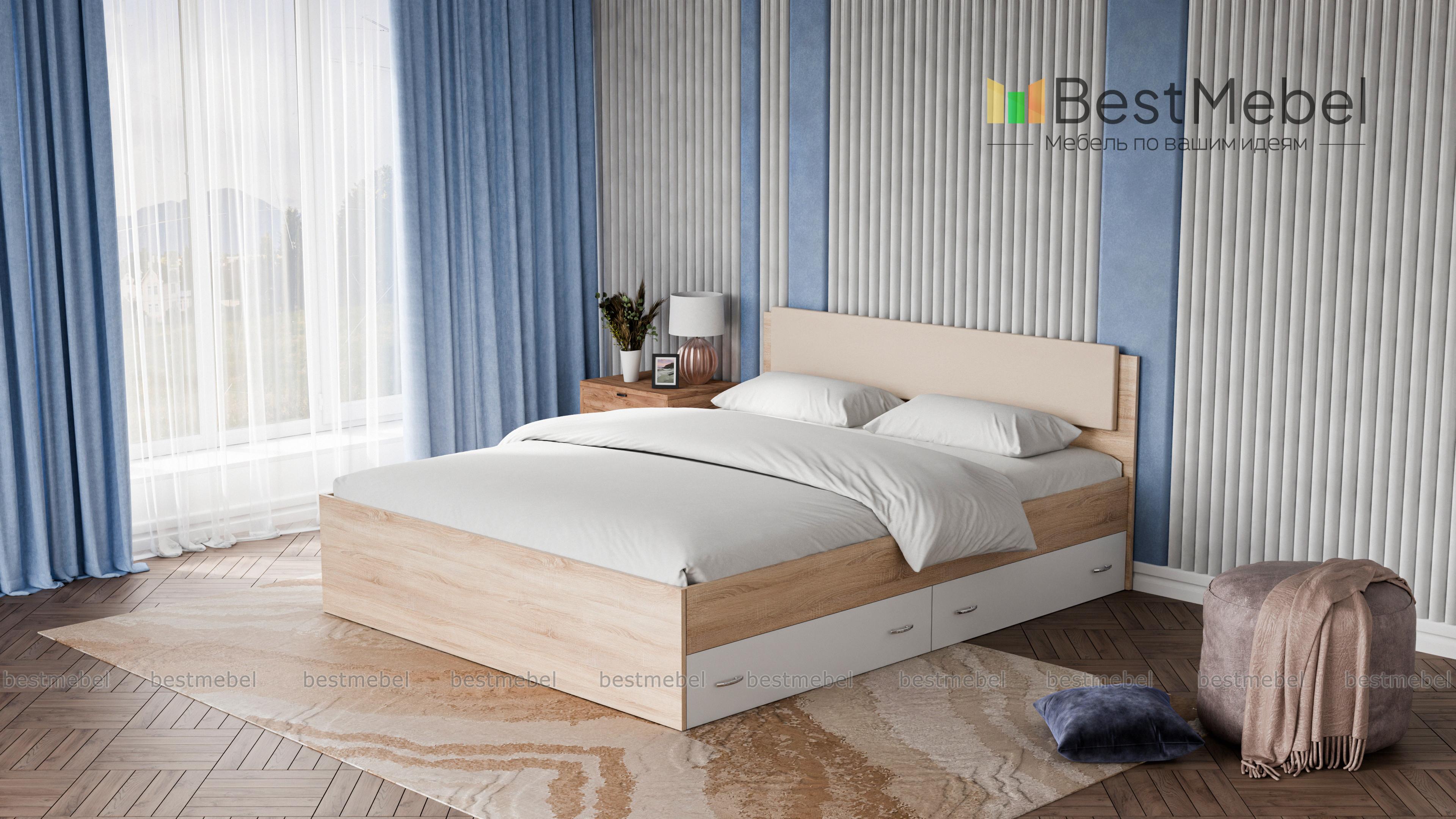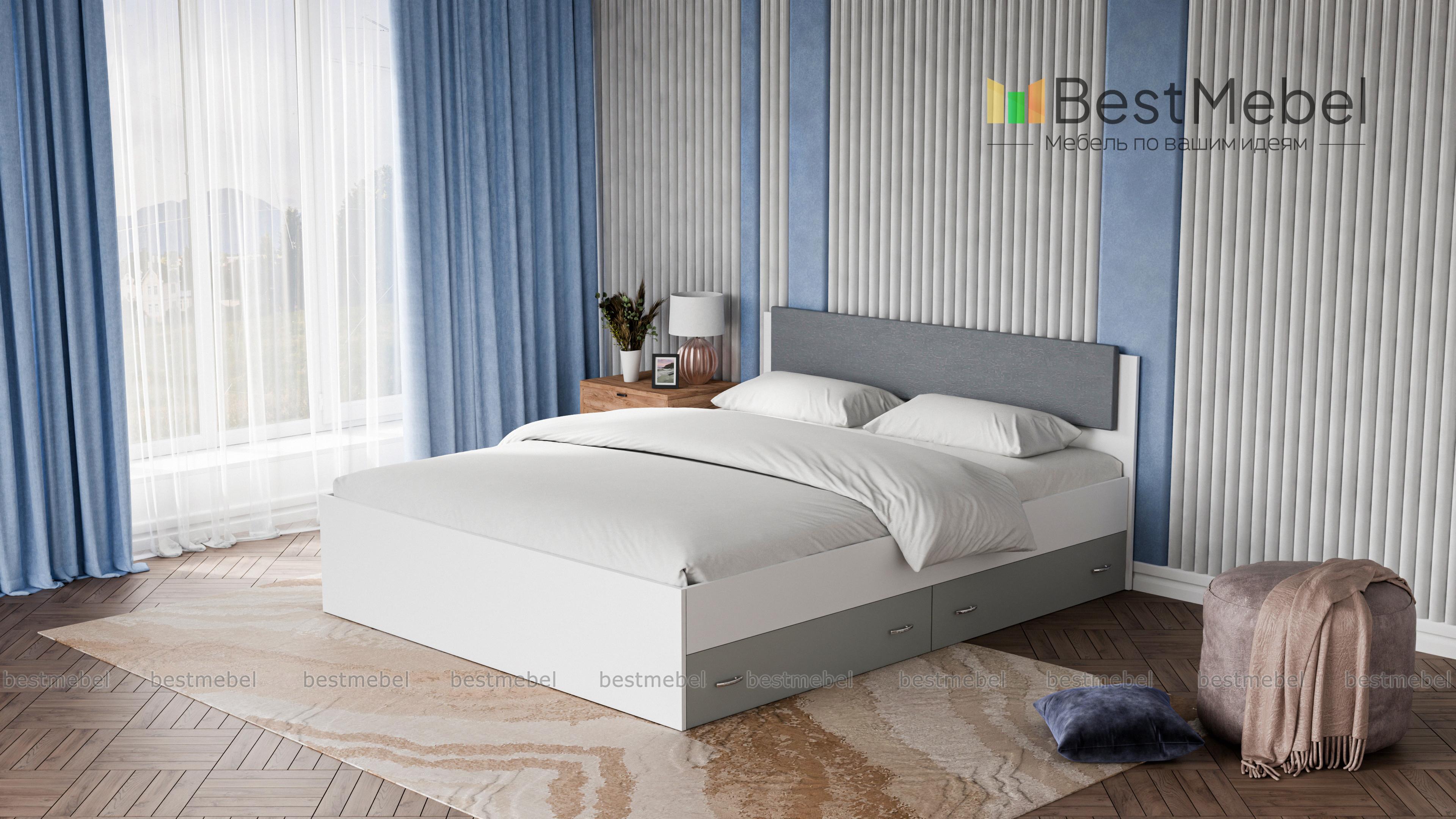 Кровать двуспальная Виктория Эко BMS станет частью элегантного современного спального интерьера. Выполненная в актуальных монохромных оттенках, кровать отличается строгой геометрией форм. Модель оборудована просторным и высоким спальным местом без спинки в изножье, спинка изголовья дополнена накладкой в мягкой обивке из экокожи в универсальном белом оттенке. Для удобного хранения постельных принадлежностей предусмотрены просторные ящики в основании. Купить кровать двуспальную Виктория Эко BMS приглашаем в наш интернет-магазин.