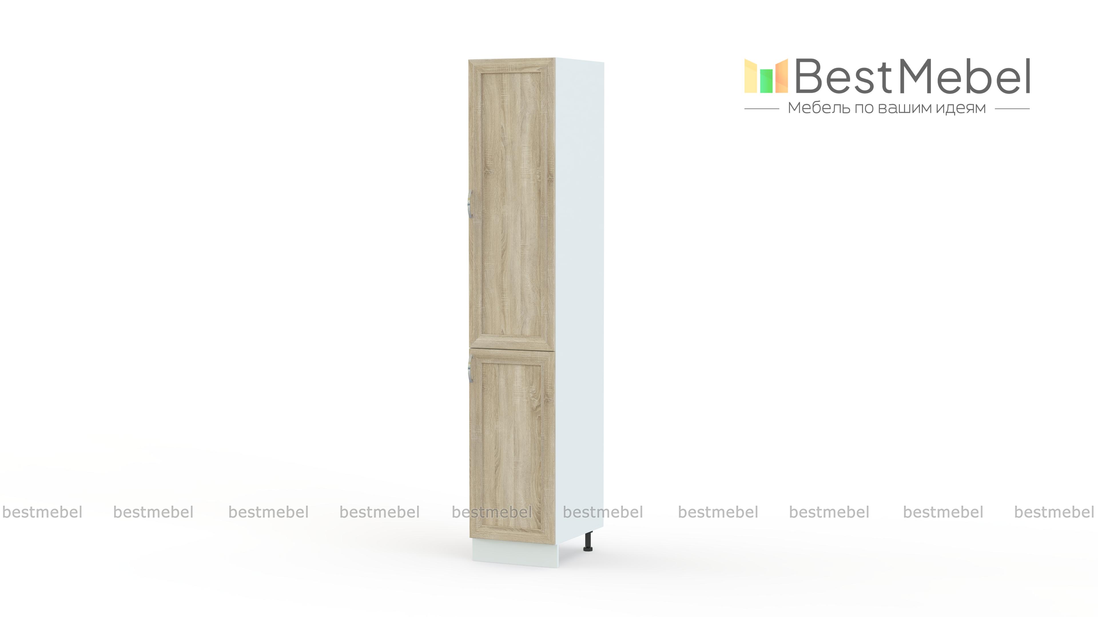 Пенал 2ДВ Трапеза рамочная BMS дополнит классический гарнитур практичной системой хранения. Высокий пенал оборудован двумя распашными отделениями с полками и сможет разместить габаритную посуду для готовки, запасы продуктов, домашний текстиль или же бытовую химию. Рамочные фасады декорированы элегантным карнизом, ручками-скобами под серебро и выполняются в актуальных светлы оттенках на выбор. Неровности пола скорректируют регулируемые опоры, закрытые цоколем. Купить пенал 2ДВ Трапеза рамочная BMS приглашаем в наш интернет-магазин по доступной цене.