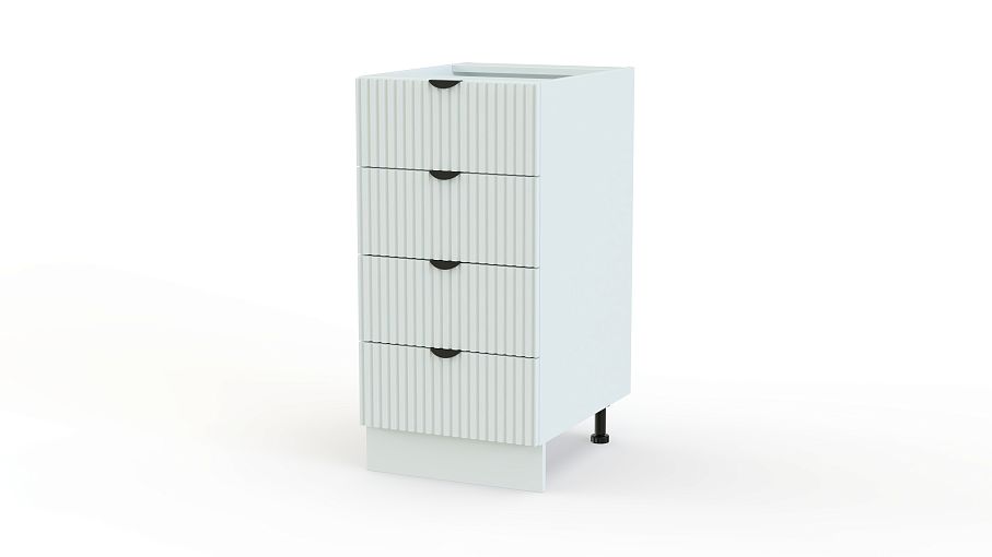 Шкаф нижний с 4-мя ящиками Альберт BMS просто незаменим для хранения кухонных мелочей. Благодаря четырем ящикам с легким выдвижением ваши столовые приборы, салфетки, полотенца и другие расходники будут всегда под рукой. Светлый рельефный фасад с полукруглыми ручками контрастного цвета — всегда актуальная современная классика. Купить шкаф нижний с 4-мя ящиками Альберт BMS вы сможете на сайте нашего интернет-магазина с изготовлением по индивидуальным размерам.