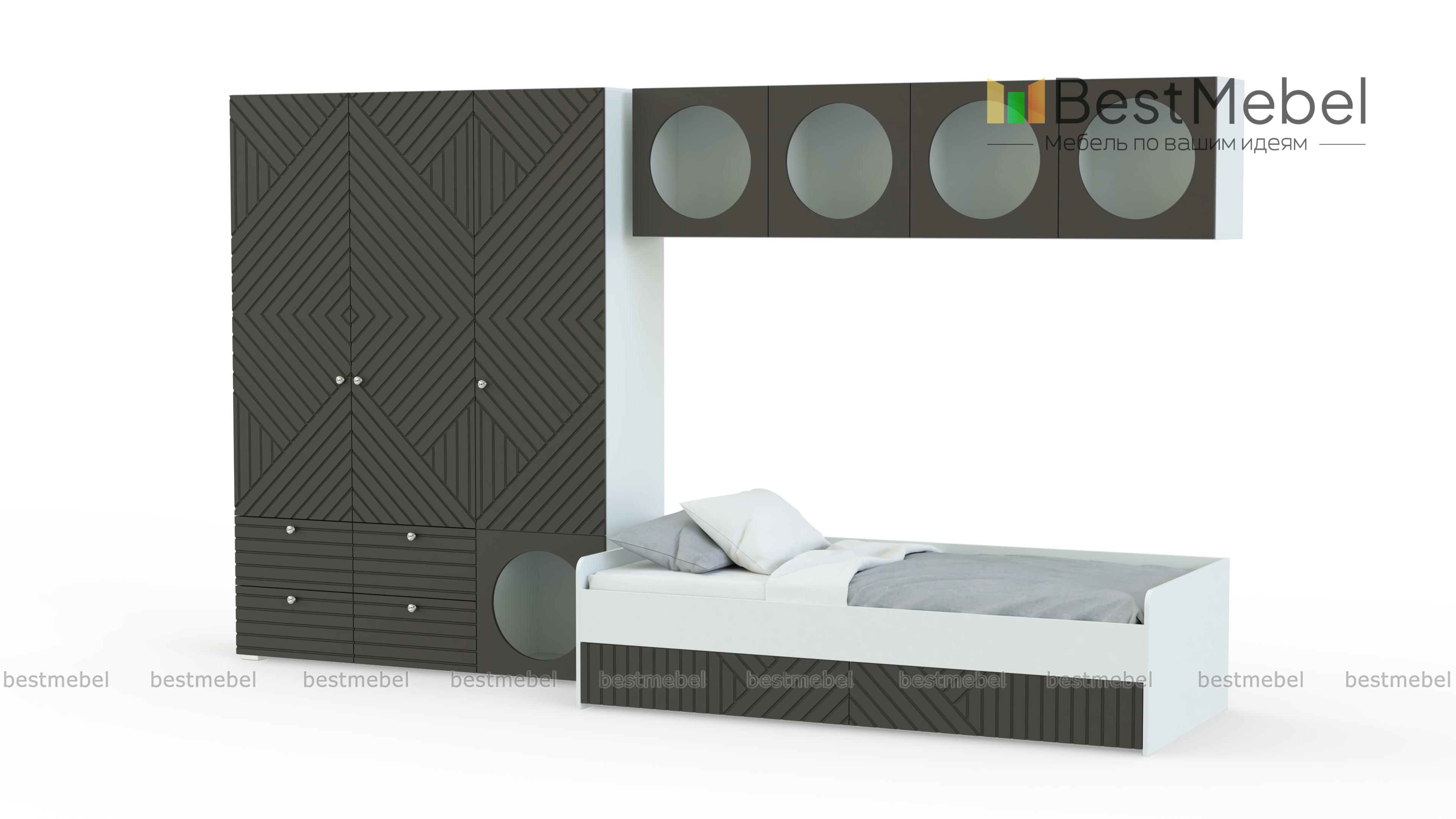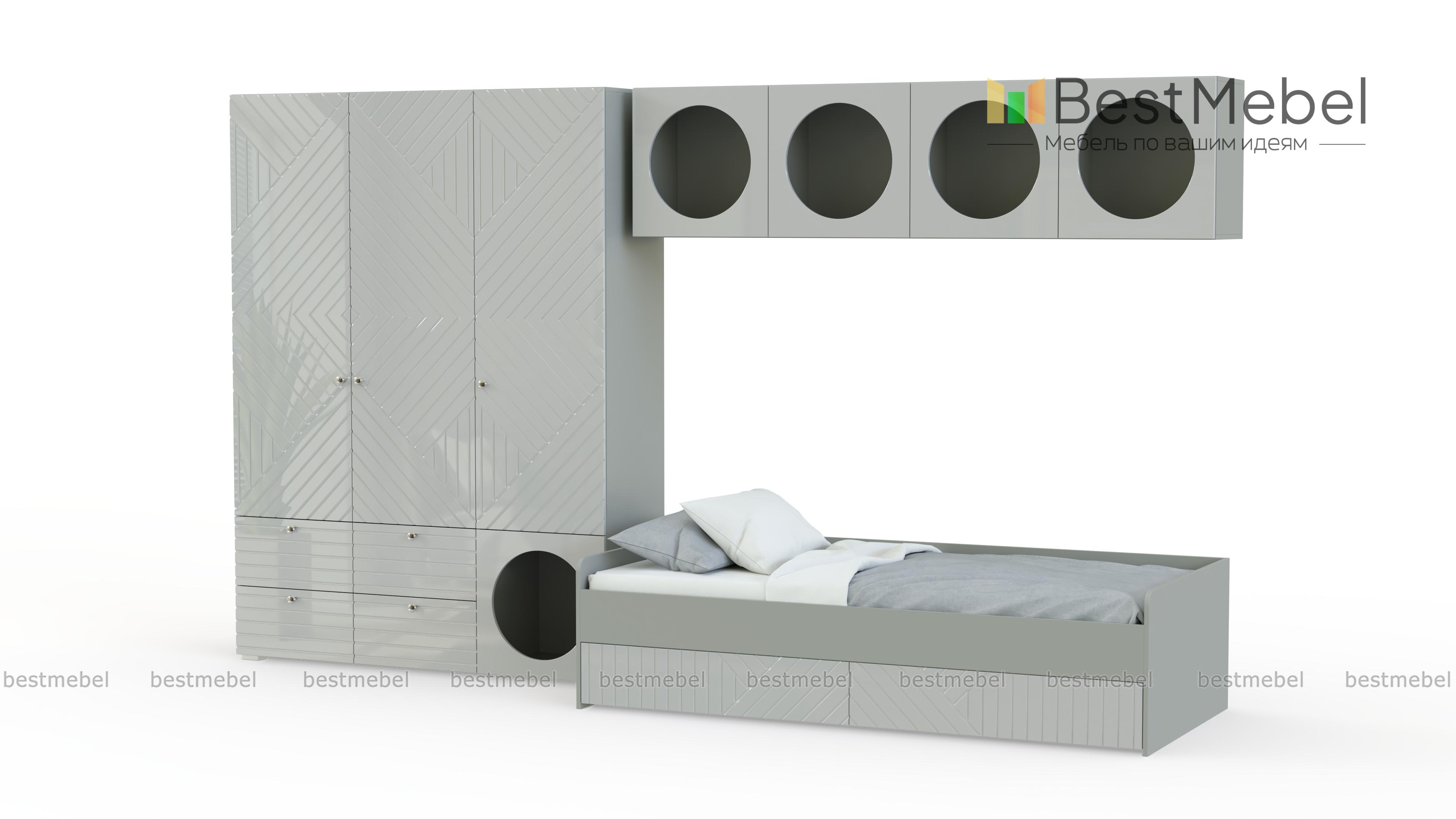 Детская комната Авелин 9 BMS оборудована зоной отдыха и удобной системой хранения. Кровать с бельевыми отсеками может днем использоваться как диван, трехстворчатый шкаф с ящиками и полки компактно разместят все вещи ребенка, от одежды до игрушек. Особенность дизайна современной коллекции — геометрический рисунок на дверцах и открытые полки, вместительность которых оценят дети и подростки. Купить детскую комнату Авелин 9 BMS с выбором цвета, размеров и комплектации приглашаем в наш интернет-магазин.