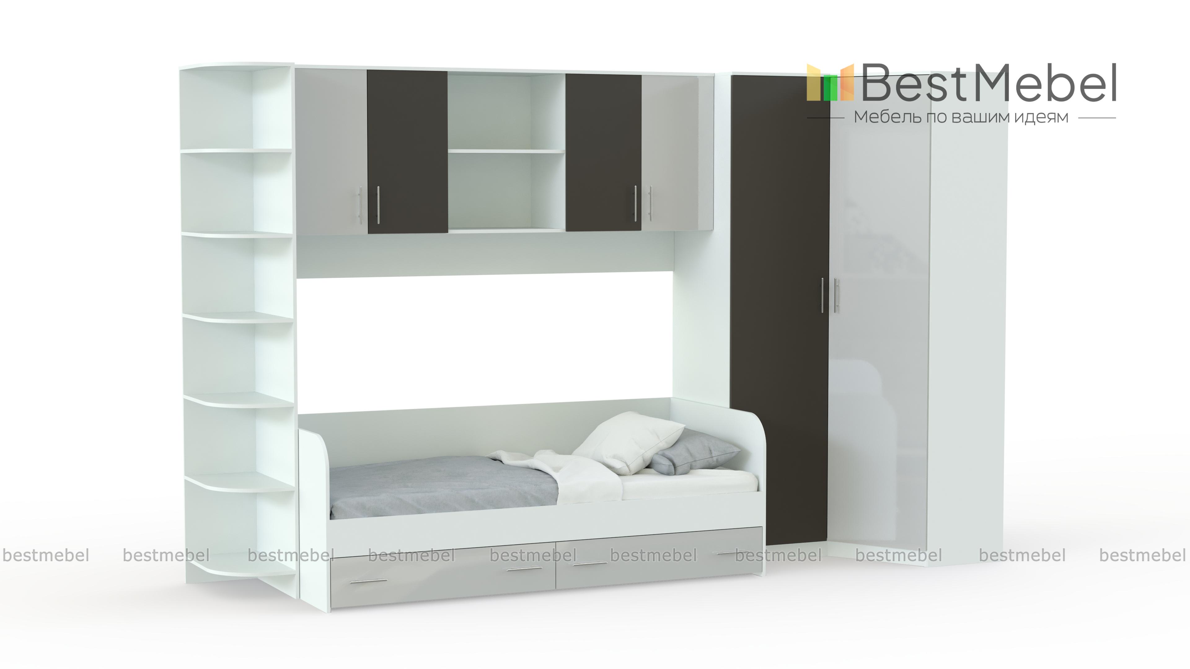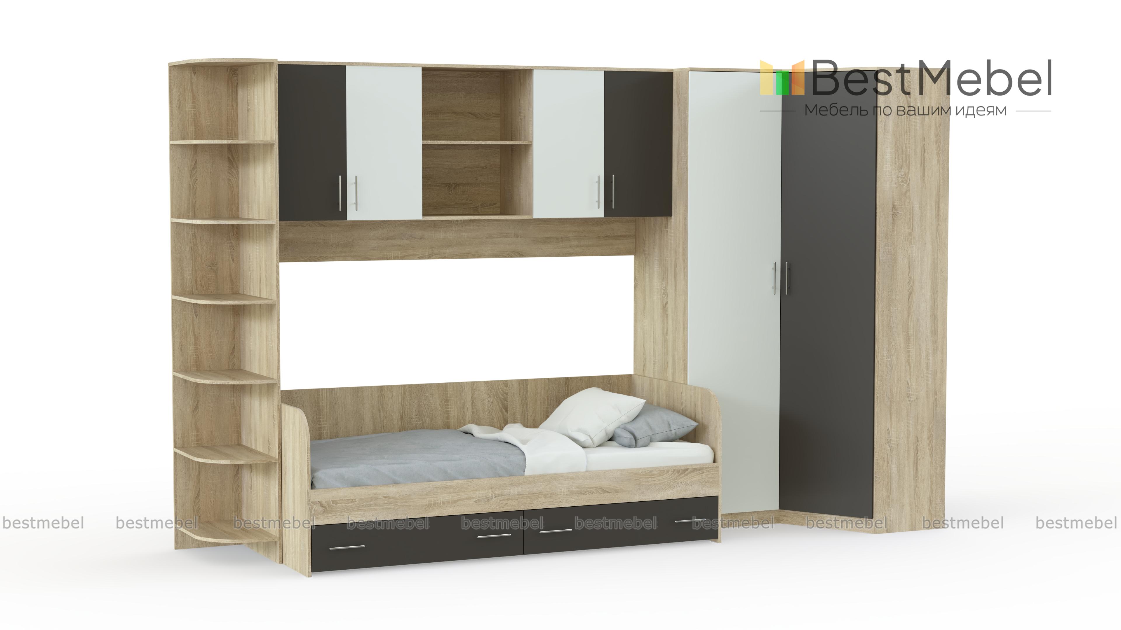 Детская комната Лучик 1 BMS – яркая и многофункциональная современная модель, объединившая комфортное спальное место с вместительной системой хранения. В комплект входит кровать с двумя выдвижными ящиками в основании, вместительный угловой шкаф, угловой модуль с открытыми полками и вместительная антресоль помогут разместить книги и необходимые мелочи. Цветные фасады добавят в детскую комнату красок и создадут позитивную атмосферу. Купить детскую комнату Лучик 1 BMS недорого приглашаем в наш интернет-магазин.