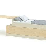 Детская кровать Сказка 10 BMS – это многофункциональная модель, объединившая комфортное спальное место, рабочую зону и удобную систему хранения. Кровать без спинок в изголовье и изножье оборудована выдвижными ящиками для хранения постельных принадлежностей или игрушек в основании и приставным столиком с регулируемыми хромированными опорами. Сочетание светлых древесных тонов корпуса и нейтральных фасадов оптимально для детских и молодежных комнат. Купить детскую кровать Сказка 10 BMS приглашаем к нам в интернет-магазин.