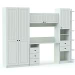 Изящная стенка Амели № 13 BMS в модном стиле прованс станет настоящим украшением девичьей комнаты. Выполненная из материалов высокого качества в характерных для направления светлых тонах, декорированная по фасадам фрезеровкой и хромированной фурнитурой, стенка выглядит романтично, уютно и при этом современно. Она оборудована всем необходимым для учебы, досуга и хранения гардероба хозяйки. В комплект входят письменный стол с тумбой и надстройкой в виде закрытой полки, вместительный одежный шкаф, пенал и угловой стеллаж.