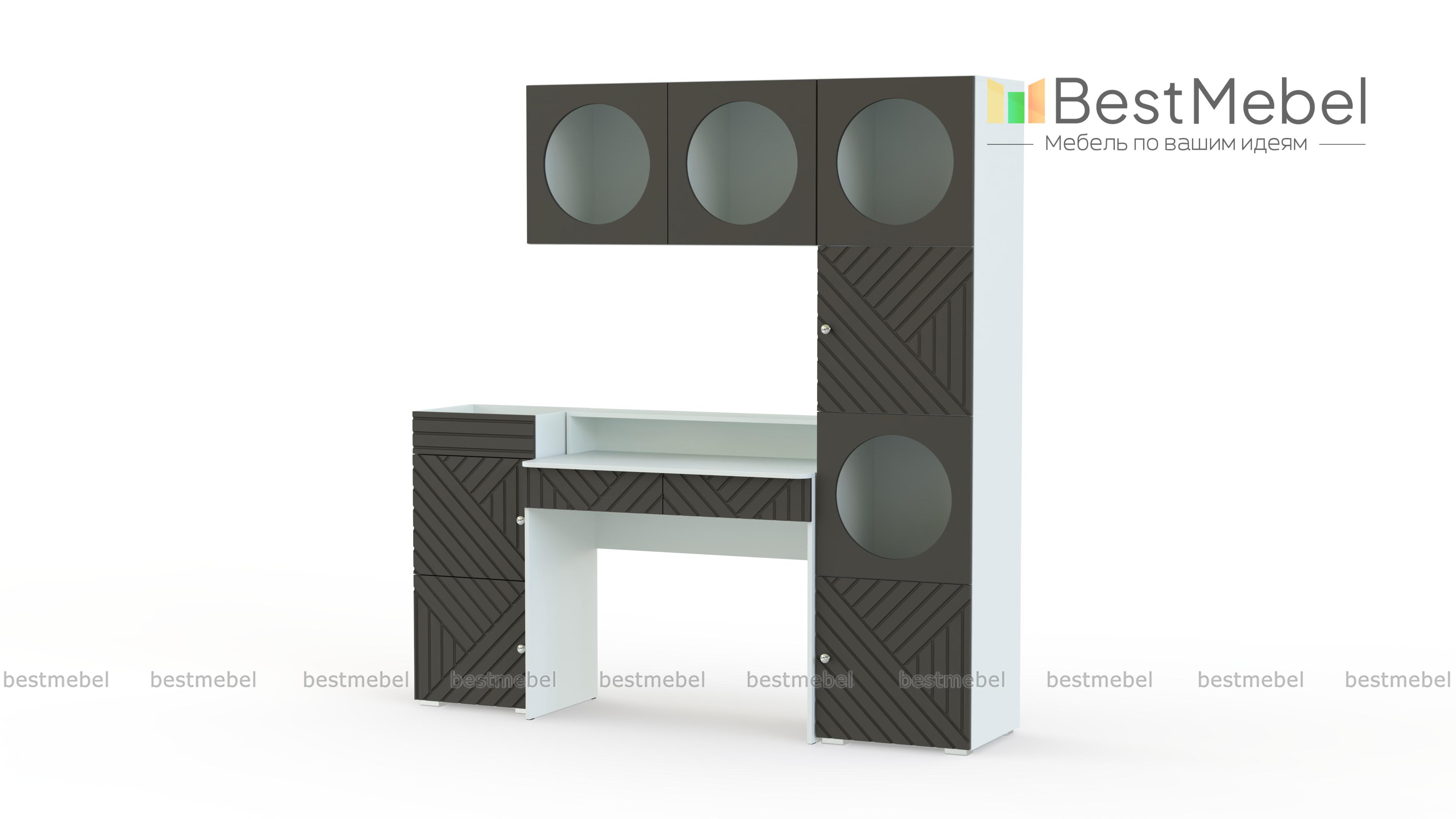 Детская стенка Авелин 8 BMS — яркая и функциональная, поможет вам создать пространство для учебы. Столик с ящиками и надстройкой дополняет вместительная приставная тумба, а продолжением шкафа-пенала станет навесная полка с оригинальными круглыми вырезами. Цветные фасады с разным направлением фрезеровки добавят красок в спокойную обстановку детской. Купить детскую стенку Авелин 8 BMS приглашаем к нам в интернет-магазин, по желанию изменив цвет и размеры.