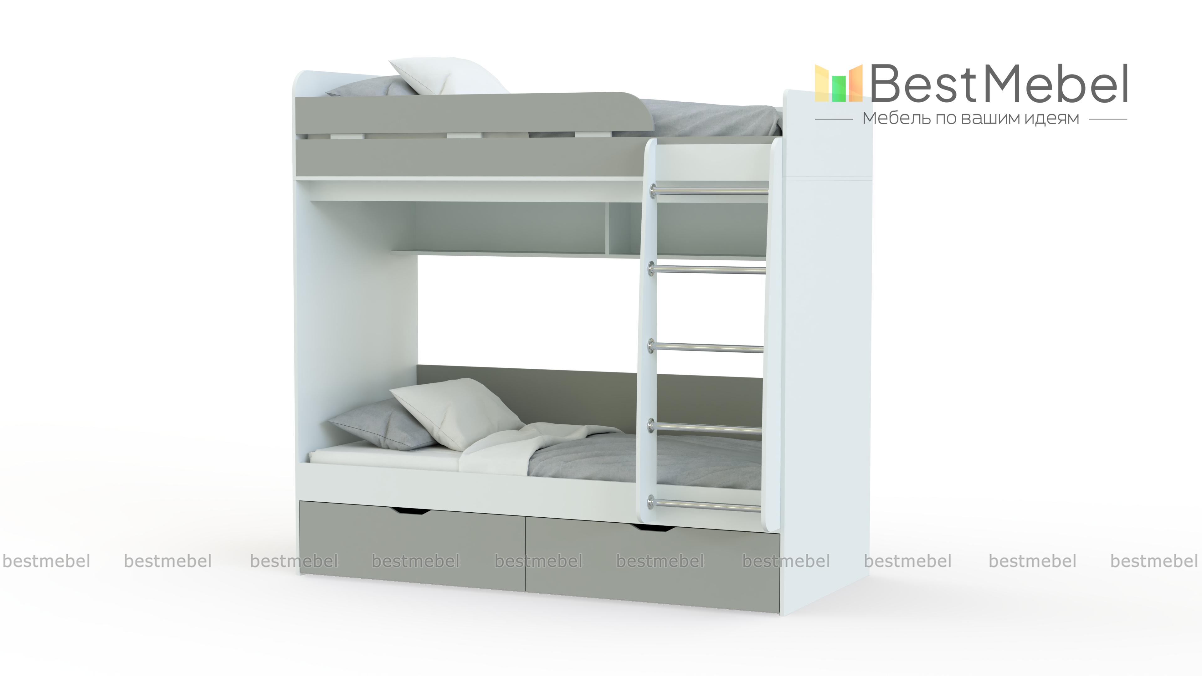 Двухъярусная кровать Белла 5 BMS – удобный и функциональный комплект для детской. Выполненный в современном стиле, он оборудован всем необходимым для комфортного сна. Спальное место второго яруса ограждено высоким, скругленным бортиком, на первый ярус ведет лестница с металлическими перекладинами. Между ярусами – просторная открытая полка для книг и игрушек. Купить двухъярусную кровать Белла 5 BMS в расцветке для мальчика или девочки вы сможете в нашем интернет-магазине.