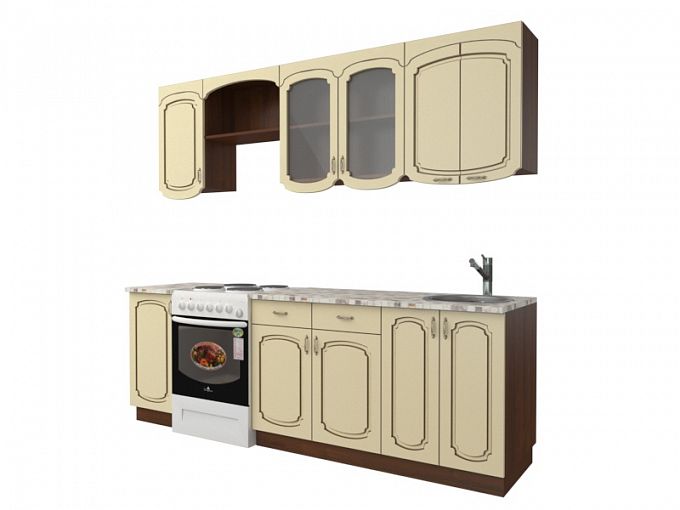 Кухня Эмилия 2400 BMS придется по душе тем, кто предпочитает уютные классические интерьеры. Гарнитур средних габаритов отличается простотой и надежностью конструкции, а декор фасадов с фрезеровкой и фигурно вырезанными элементами станет украшением дома. В комплекте есть все необходимое для комфортной готовки и размещения кухонной утвари и продуктов – просторные распашные отделения с полками, витрина, выдвижные ящики под столовые приборы и открытая полочка для мелочей. Купить кухню Эмилия 2400 BMS по доступной цене приглашаем к нам в интернет-магазин.