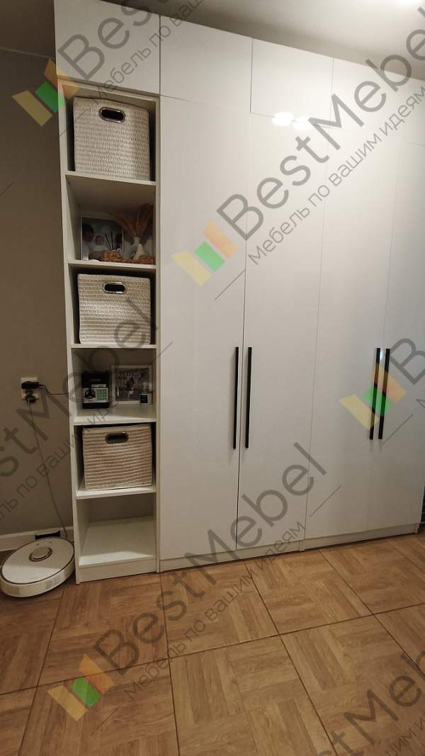 Всё превосходно:- Вежливые сотрудники по телефону и водитель, приятное отношение со всеми,- Товар доставлен отлично упакованный, все элементы без сколов и дефектов,- На всех соответствующих элементах есть метки, отверстия и т.д. для дальнейшей сборки,- Сборка без проблем, все элементы в сборном виде ровные, без зазоров.Советую данную антресоль и BestMebel, уверен вся продукция качественная!