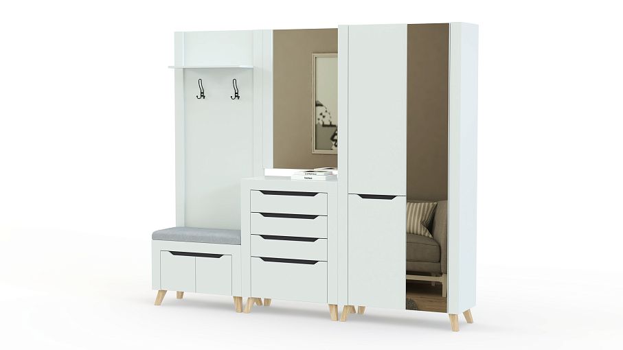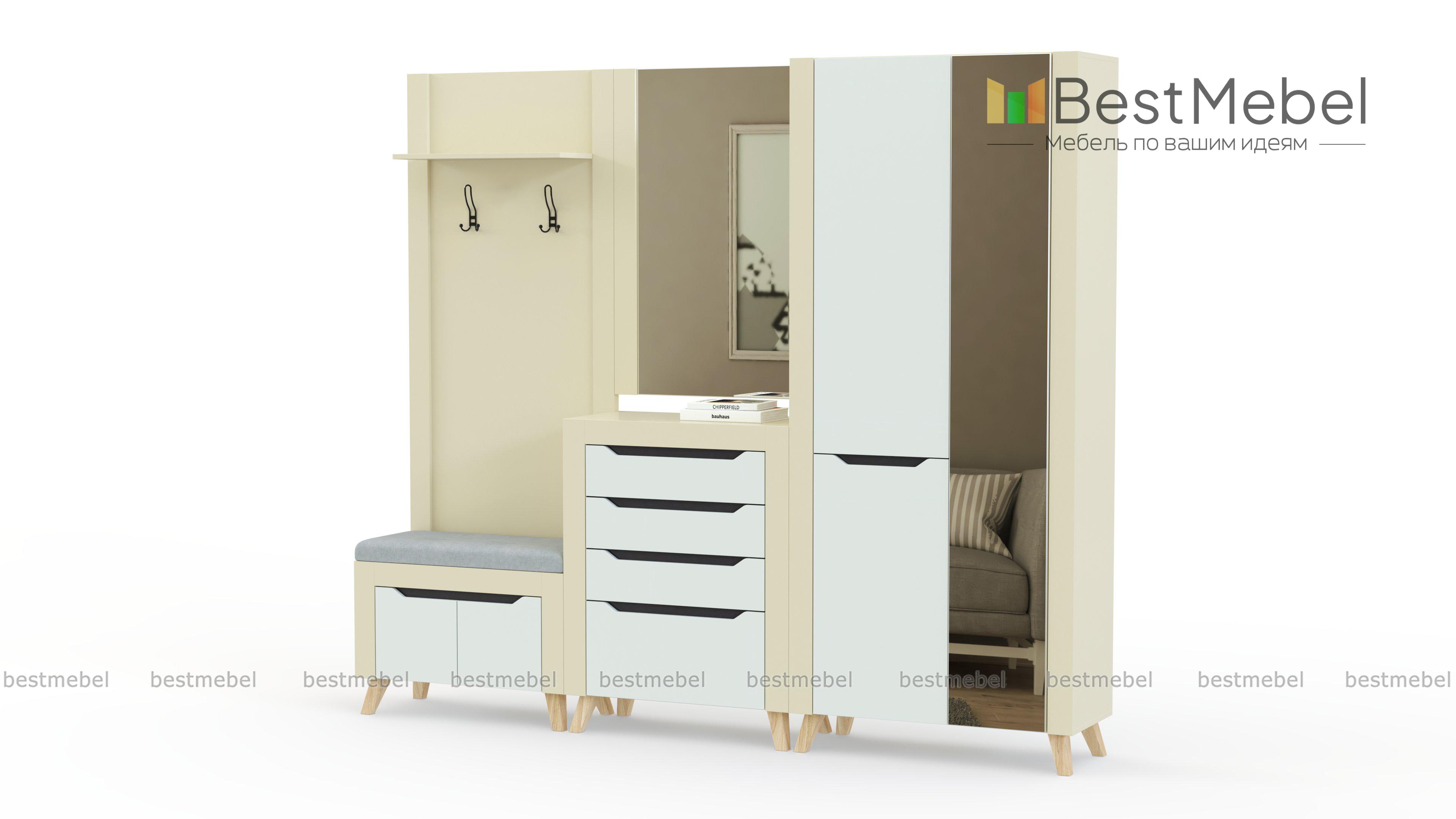 Прихожая Династия 20.2 BMS отличается стильным минимализмом и функциональностью. Нарочитую простоту модулей, выполненных в нейтральном цвете, подчеркивают широкие накладки, а модную геометричность дизайну придают трапециевидные ручки-вырезы. В комплект входят открытая вешалка, совмещенная с обувницей, распашной шкаф с зеркалом, комод и большое навесное зеркало. Купить прихожую Династия 20.2 BMS приглашаем в наш интернет-магазин с возможностью изготовления по индивидуальным размерам.