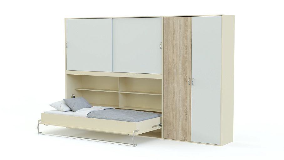 Мы не рекомендуем покупать пружинные матрасы к шкафу-кровати. Стоит отдавать предпочтение беспружинным изделиям. Это связано с тем, что поведение пружин в вертикальном положении матраса невозможно предсказать. Матрас быстро подвергается деформации и смещению слоев. Идеальным вариантом для откидной модели будет лёгкий беспружинный матрас, основу которого составляют современные материалы, не имеющие в составе пружины.