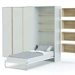 Шкаф-кровать трансформер Фиона 34 BMS – стильная альтернатива привычной мебели в интерьере современной молодежной комнаты. Креативный дизайн сочетается с высокой функциональностью в универсальной композиции 2 в 1. Вместительный шкаф для белья и одежды дополнен модулем-трансформером с откидной кроватью и оригинальными навесными полками для книг и декоративных мелочей. Спальное место раскладывается при помощи вертикального механизма, внутри ниши находятся открытые полки. Купить шкаф-кровать трансформер Фиона 34 BMS приглашаем к нам в интернет-магазин.