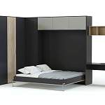 Шкаф-кровать трансформер Хлоя 19 BMS – отличный вариант для обустройства современной студии. Угловая композиция учитывает особенности планировки, а сэкономить пространство поможет продуманная до мелочей многофункциональная конструкция. Модель оборудована распашными отделениями для белья и одежды, торцевым стеллажом и секцией с откидной двуспальной кроватью и антресолью. Фасады в сочетании платиново-серых и теплых древесных тонов смотрятся особенно атмосферно со встроенным освещением. Купить шкаф-кровать трансформер Хлоя 19 BMS приглашаем в наш интернет-магазин.