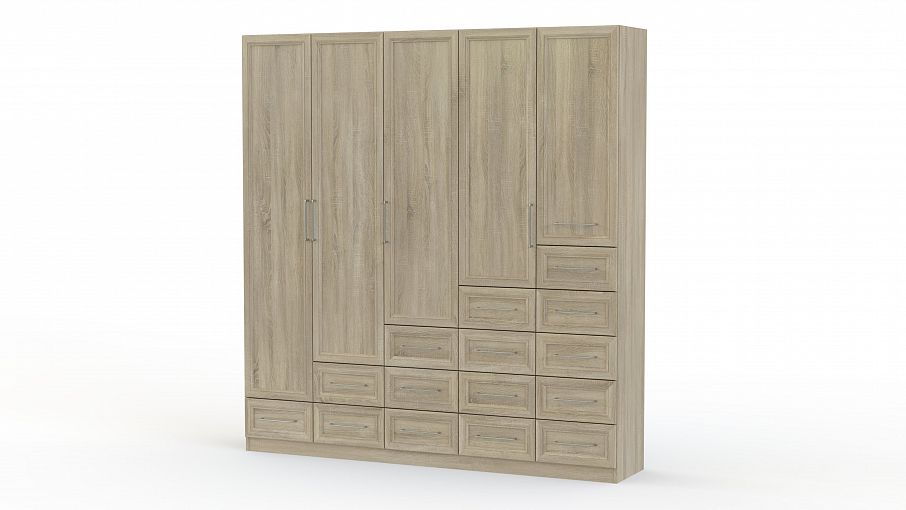 Распашной шкаф Крона 30 BMS – крупногабаритная модель, которая гармонично объединила классические черты и современную функциональность. Рамочные фасады с наборной планкой древесных тонов смотрятся уютно и дополнят интерьер традиционной спальни. Шкаф оборудован платяными и бельевыми отделениями, в нижней части располагаются лесенкой выдвижные ящики для мелочей. Купить распашной шкаф Крона 30 BMS и оборудовать просторную комнату удобной системой хранения вам поможет наш интернет-магазин.