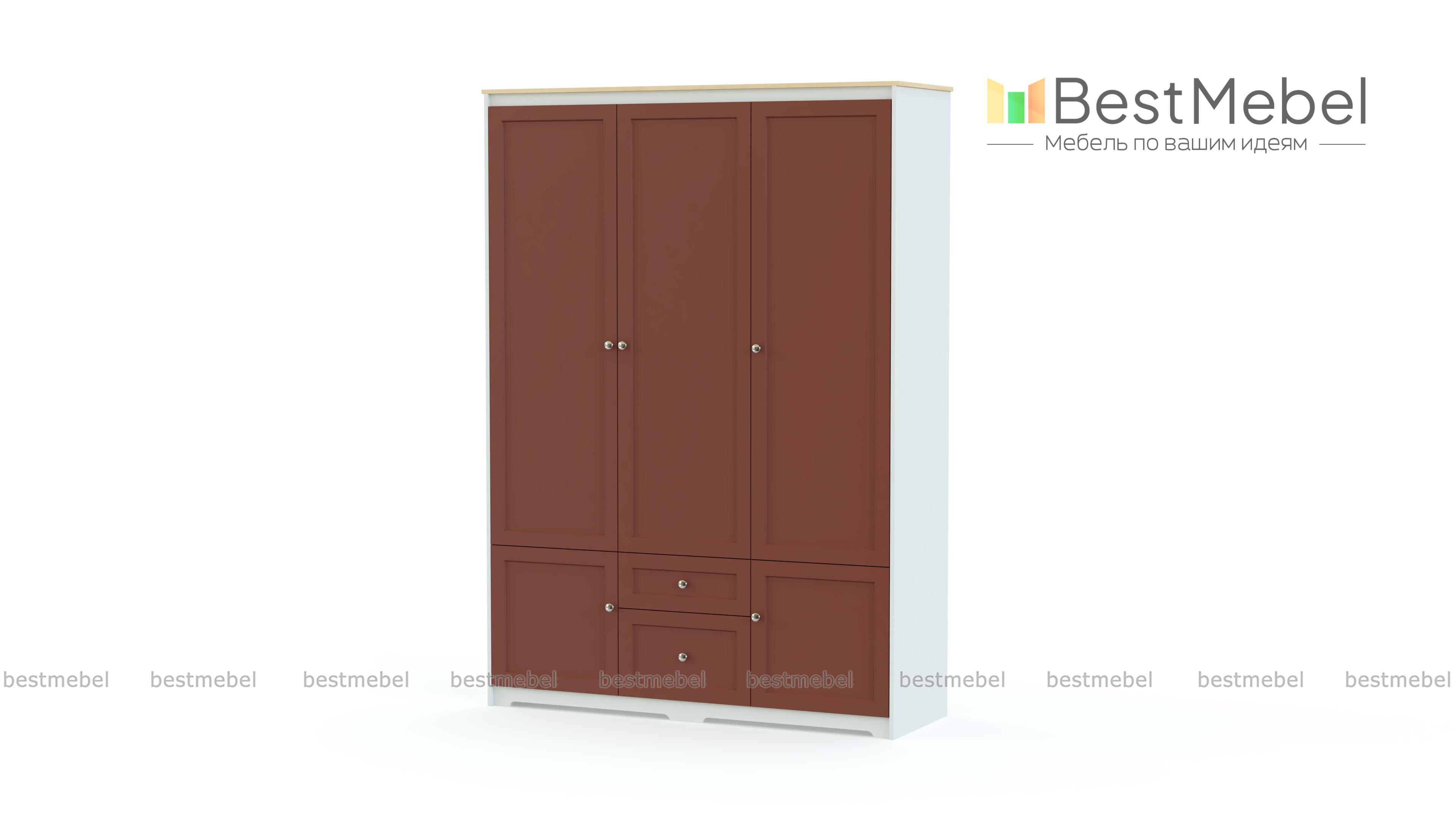Распашной шкаф Сопрано BMS станет прекрасным выбором для создания интерьера в классическом или кантри стиле. В верхней части шкафа располагаются отделения со штангой и бельевыми полками, а в нижней – два глухих распашных отделения и два выдвижных ящика – большой и малый. Модель с фрезерованными фасадами и ручками-кнопками выполнена в светлых тонах со стильным акцентом в виде верхней панели контрастного цвета. Купить распашной шкаф Сопрано BMS приглашаем к нам в интернет-магазин.