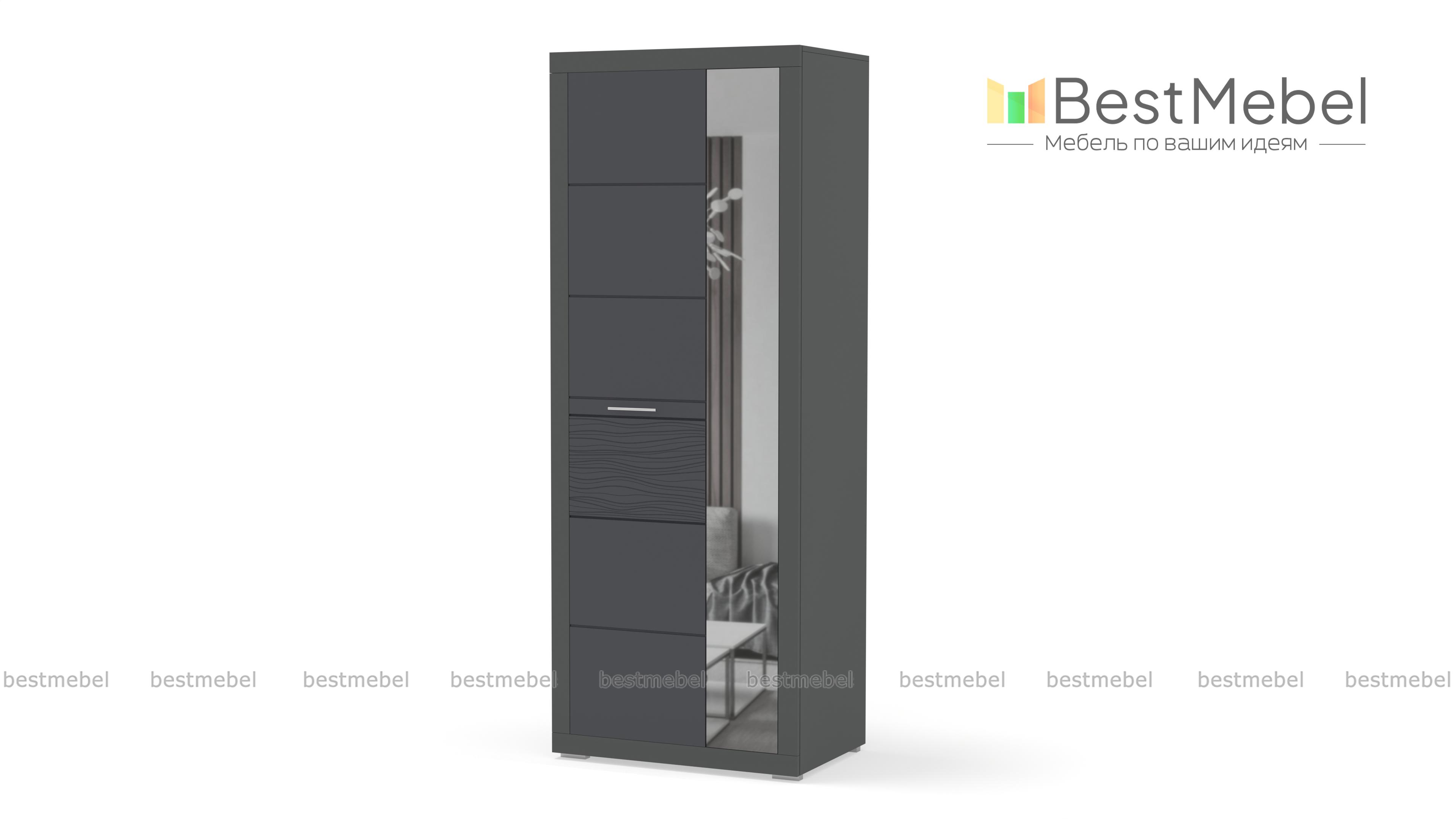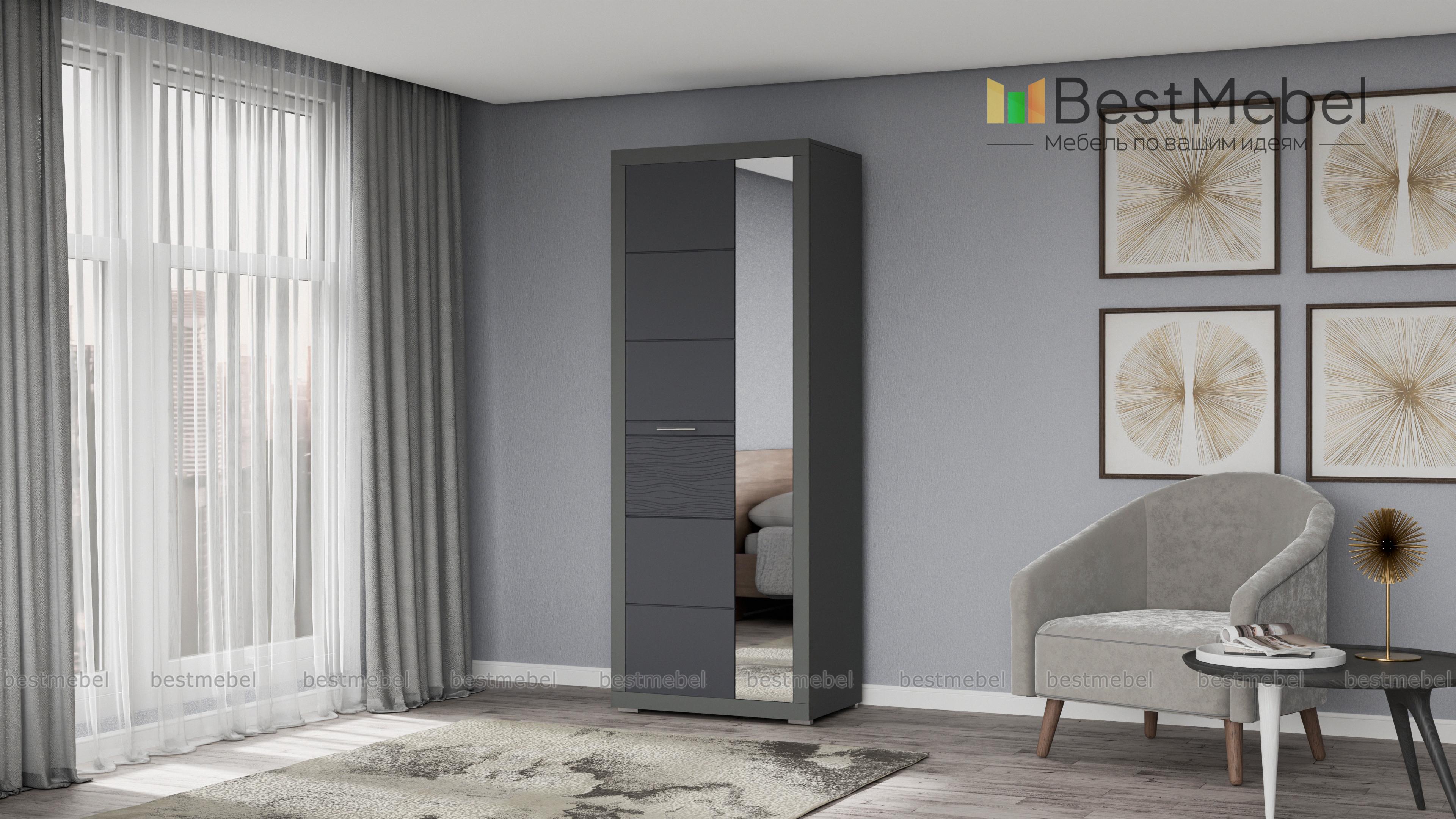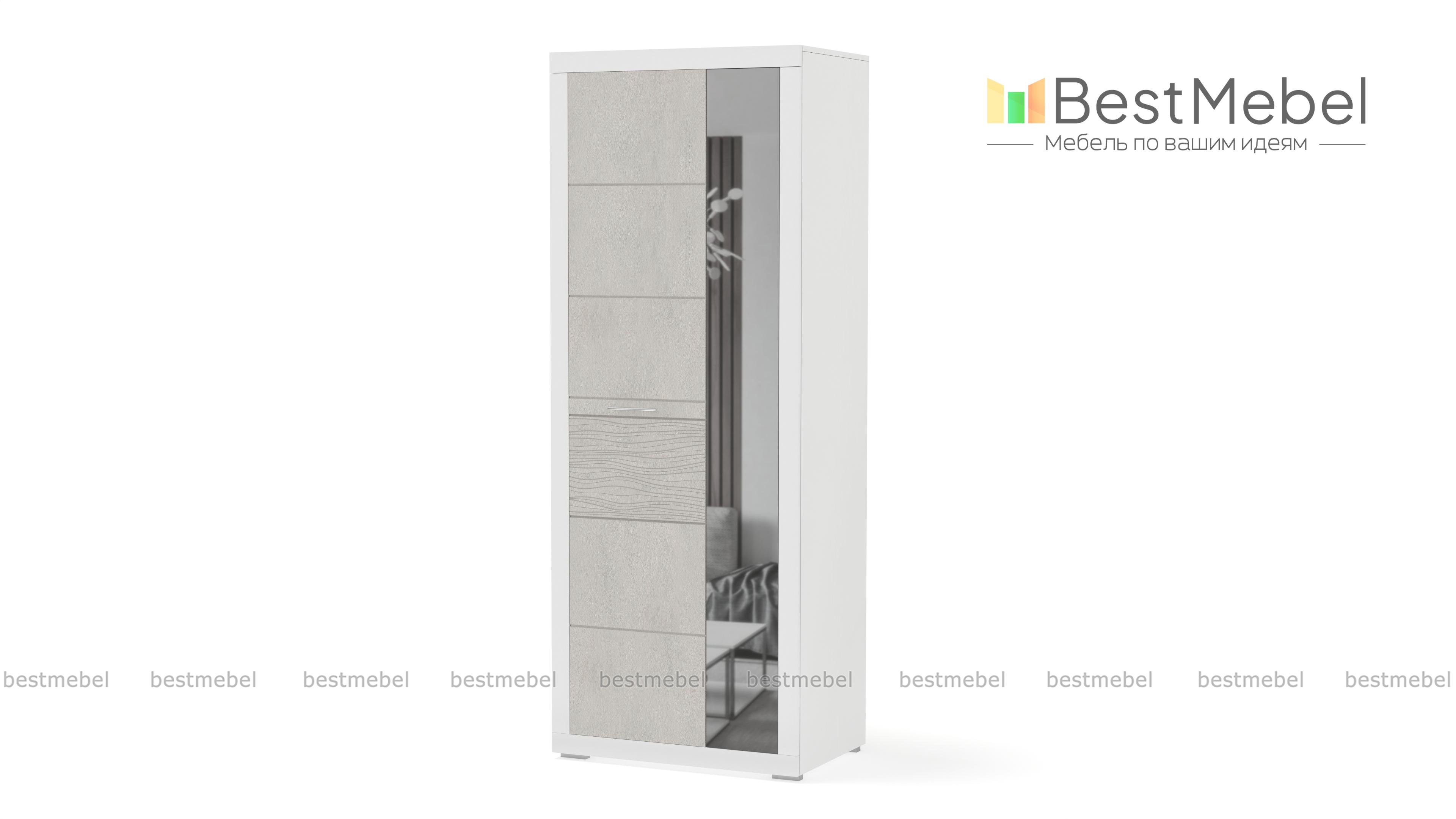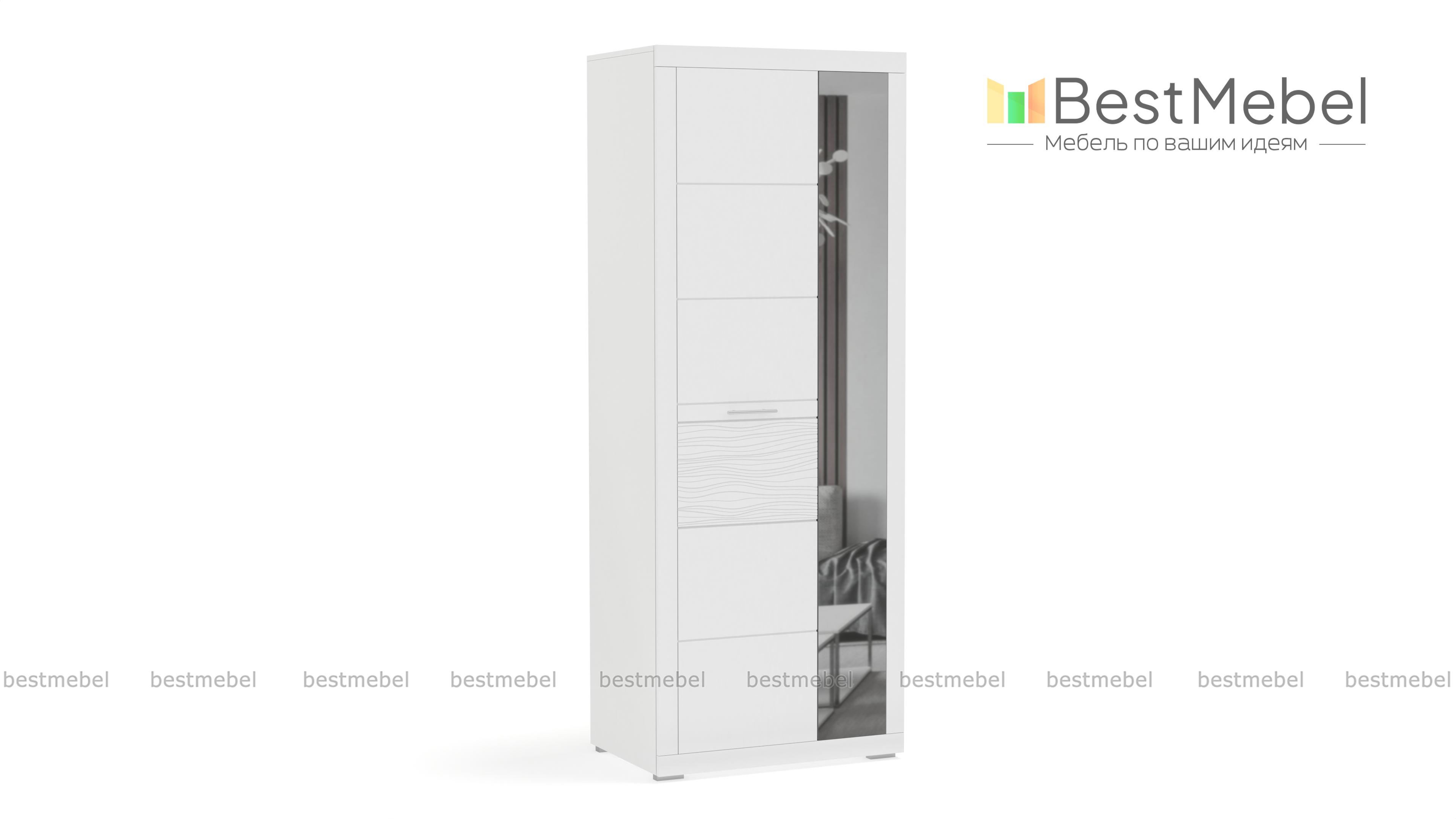 Шкаф Вирбий 1 BMS – изящная модель минималистичного дизайна для эффектного и функционального интерьера прихожей. Отличительная особенность шкафа – белоснежные глянцевые фасады с рифленой вставкой, узкая дверца – зеркальная. Внутреннее наполнение – пять вместительных полок для одежды или обуви. Светлый и легкий, шкаф сделает малогабаритное помещение визуально просторнее. Купить Шкаф Вирбий 1 BMS по доступной цене вы сможете в нашем интернет-магазине.