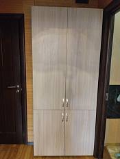 Отличный шкаф, каркас жёсткий даже без задней стенки. За счёт точно просверленных отверстий всё легко и ровно собирается. Все элементы шкафа имеют наклейку с номером позиции, наклейка удаляется легко и без следа. Ящики выдвигаются нажатием.Шкаф по индивидуальным размерам 1000х2600х600.Был небольшой запах, который выветрился примерно за две недели.