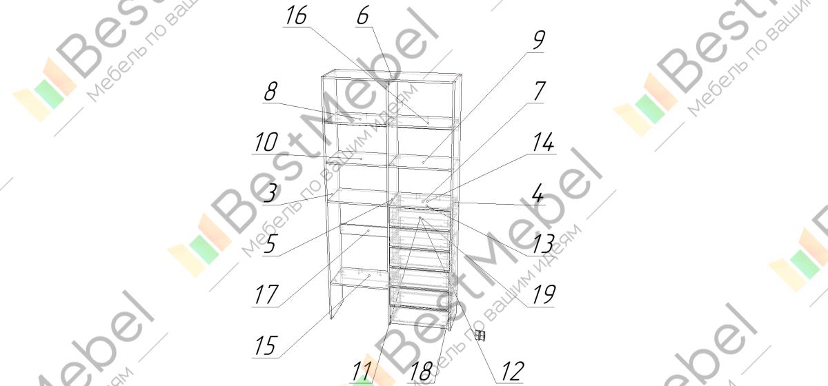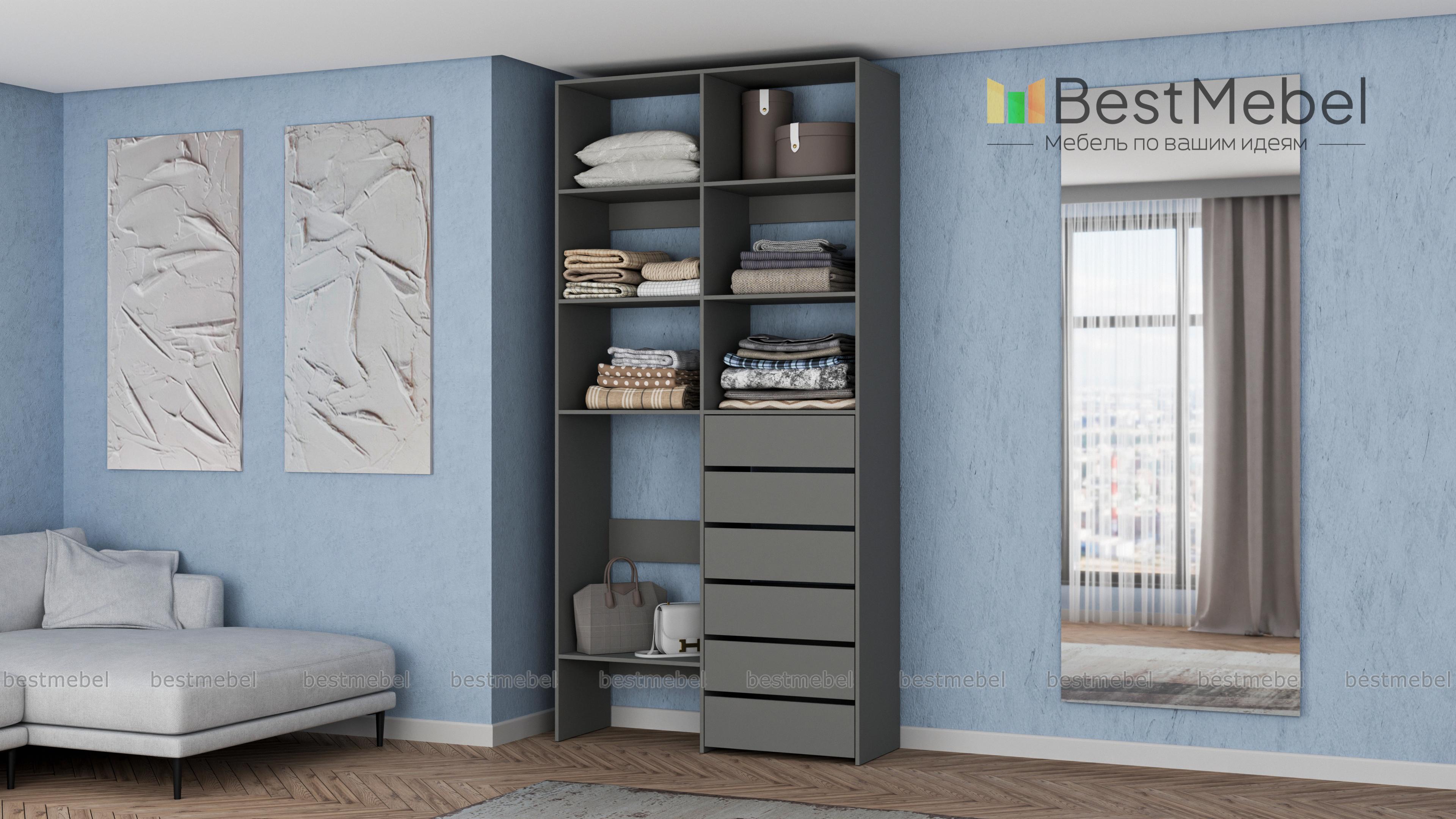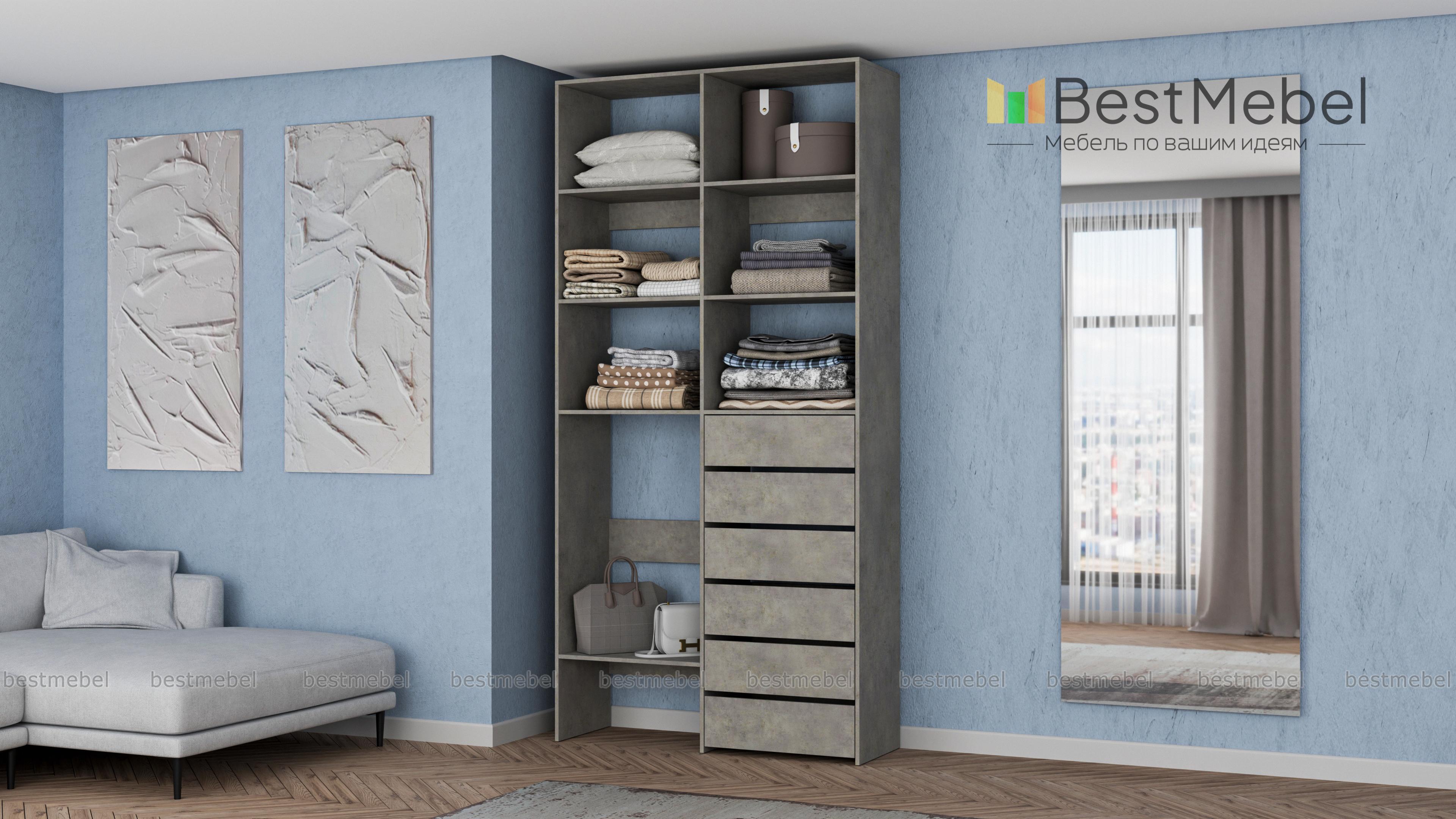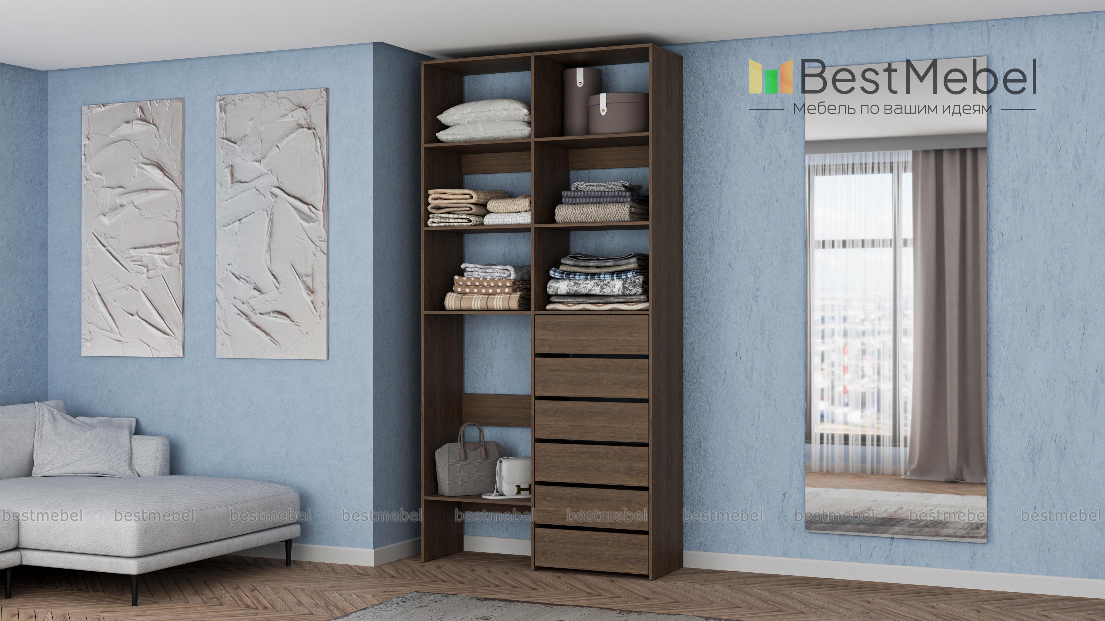 Стеллаж для одежды Мирта 39 BMS представляет собой готовое решение для вашей прихожей или гардеробной комнаты. Расположенные на разной высоте полки и целых шесть выдвижных ящиков позволят вам разместить как мелкие, так и габаритные вещи: одежду, обувные коробки и всевозможные аксессуары. Для изготовления стеллажа использован современный экологичный материал — ламинированная ДСП. Купить стеллаж для одежды Мирта 39 BMS в оттенках нашего каталога на выбор вы сможете на сайте интернет-магазина.