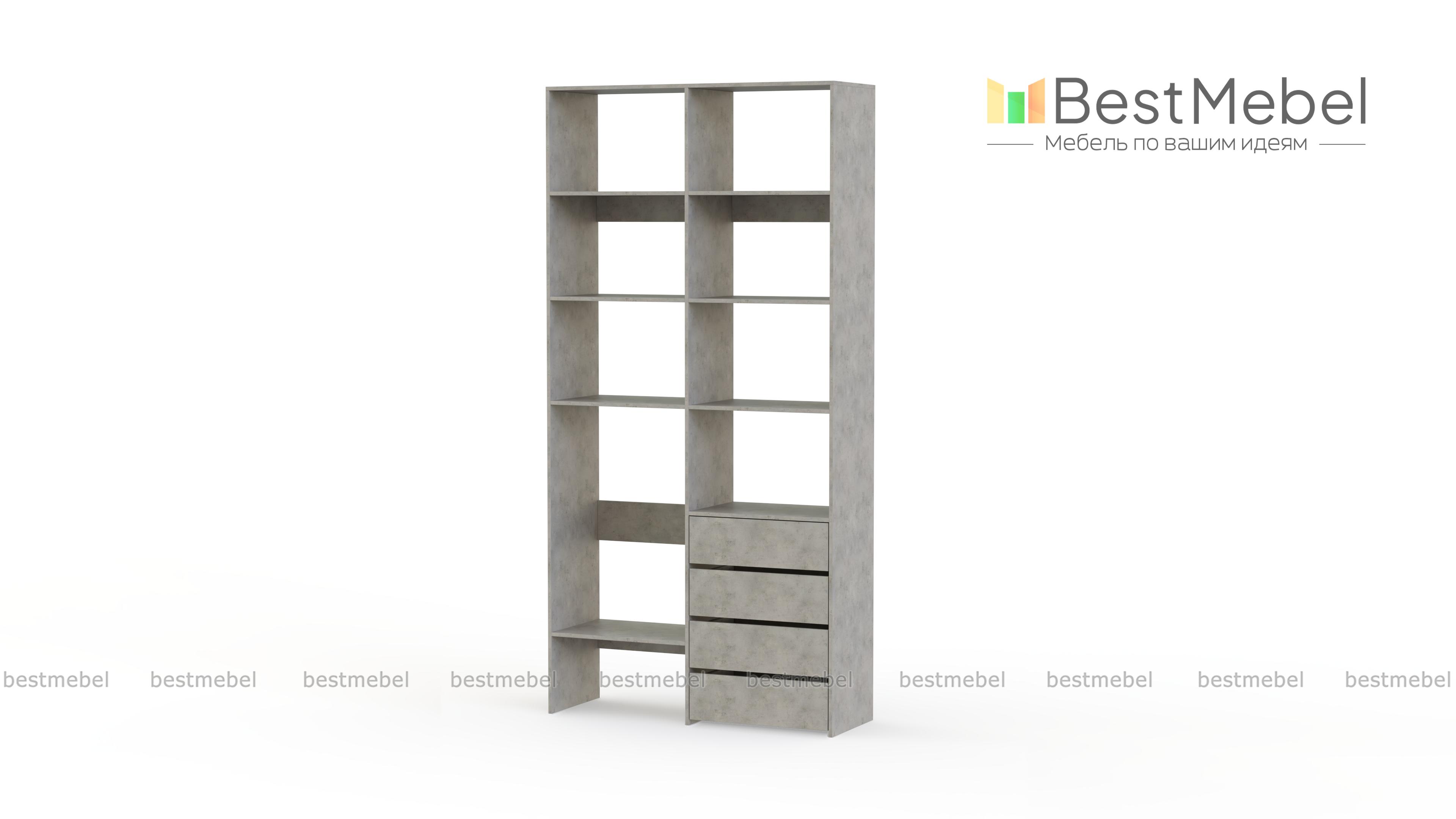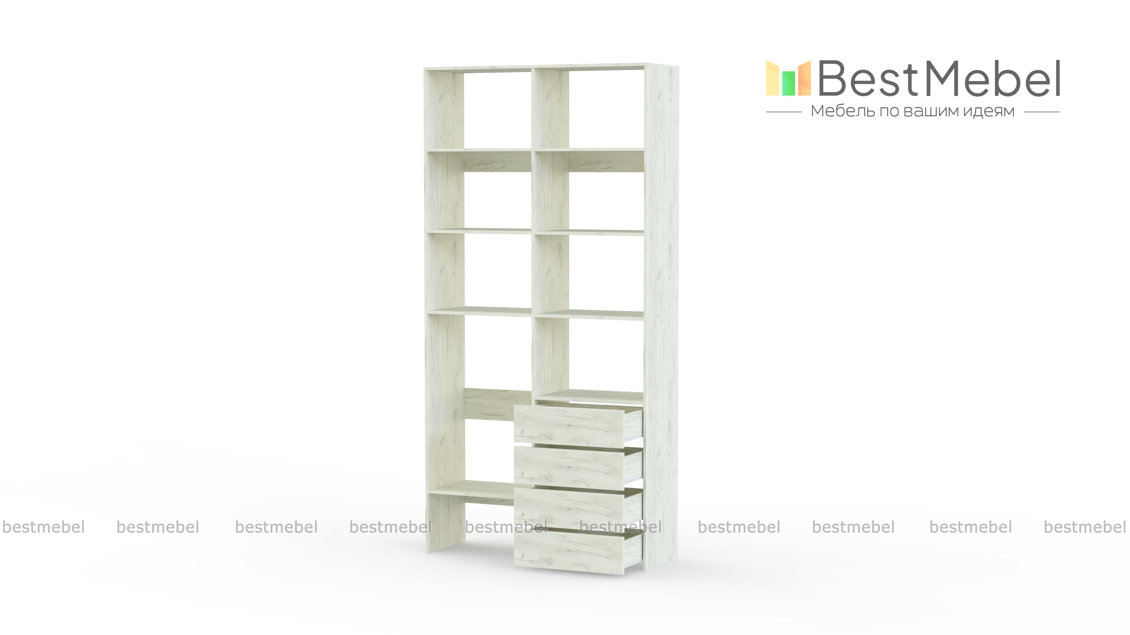Стеллаж для одежды Мирта 4 BMS – практичное решение для гардеробной, детской комнаты или спальни. Лаконичный современный дизайн сочетается с надежной конструкцией из устойчивой к повреждениям ламинированной плиты. Открытые секции разной высоты помогут вам разместить как небольшие, так и габаритные вещи, а для мелочей предусмотрены четыре выдвижных ящика. Купить стеллаж для одежды Мирта 4 BMS приглашаем в наш интернет-магазин с выбором размеров и цвета по каталогу.