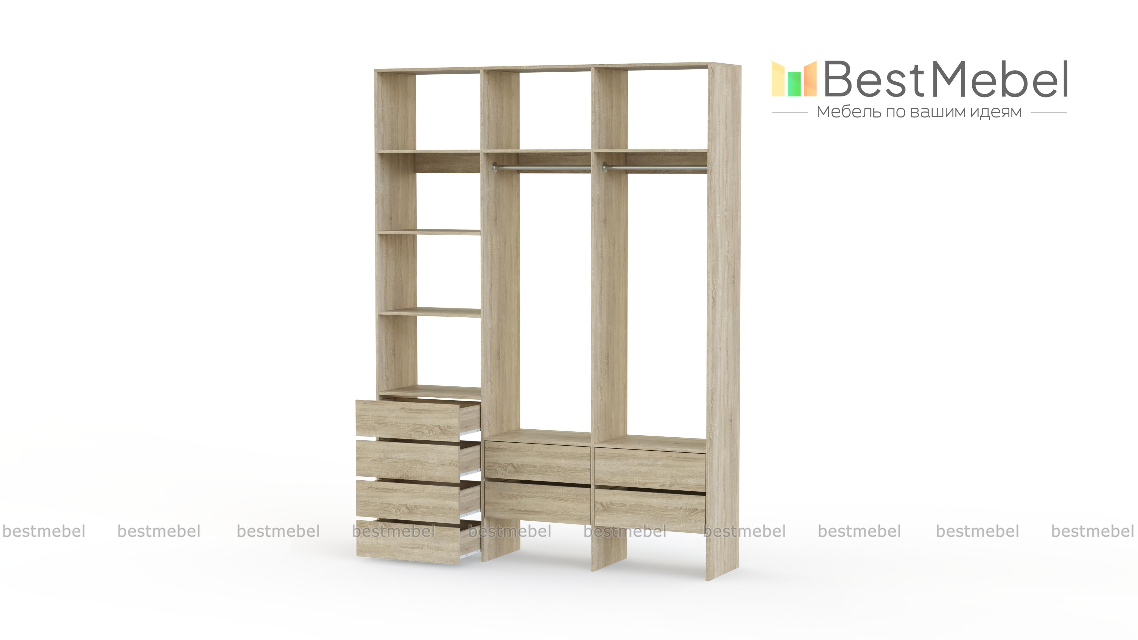 Стеллаж для одежды Мирта 54 BMS станет частью современной прихожей или гардеробной. Конструкция из ламинированной плиты имеет универсальный дизайн, надежна и функциональна. Система хранения трехсекционного стеллажа включает в себя две платяные штанги, ящики для белья и мелочей, ряд верхних и боковых полок, а пространство под ящиками можно использовать для размещения обуви. Купить стеллаж для одежды Мирта 54 BMS приглашаем в наш интернет-магазин, подобрав нужные размеры и цвет по каталогу.