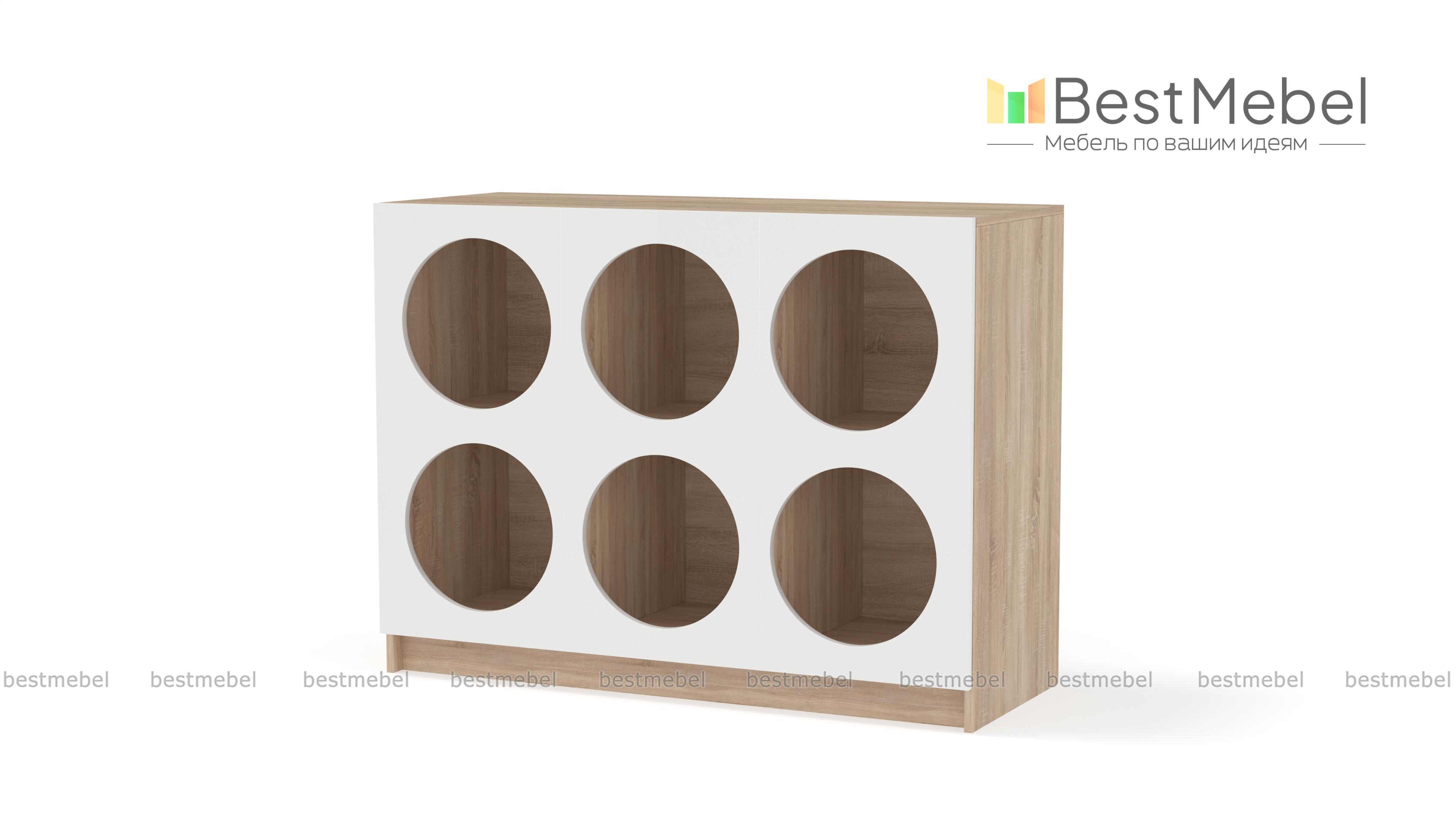 Стеллаж Руди 7 BMS позволит вам интересно выставить книги, предметы коллекции, красивую посуду и другие вещи. Шесть вместительных полок имеют необычные круглые вырезы, превращая практичный предмет меблировки в стильный интерьерный акцент. На широкой верхней панели стеллажа достаточно места для ТВ, любимой вазы или уютного светильника. Купить стеллаж Руди 7 BMS вы сможете по доступной цене на сайте нашего интернет-магазина, подобрав цветовую гамму по своему вкусу.