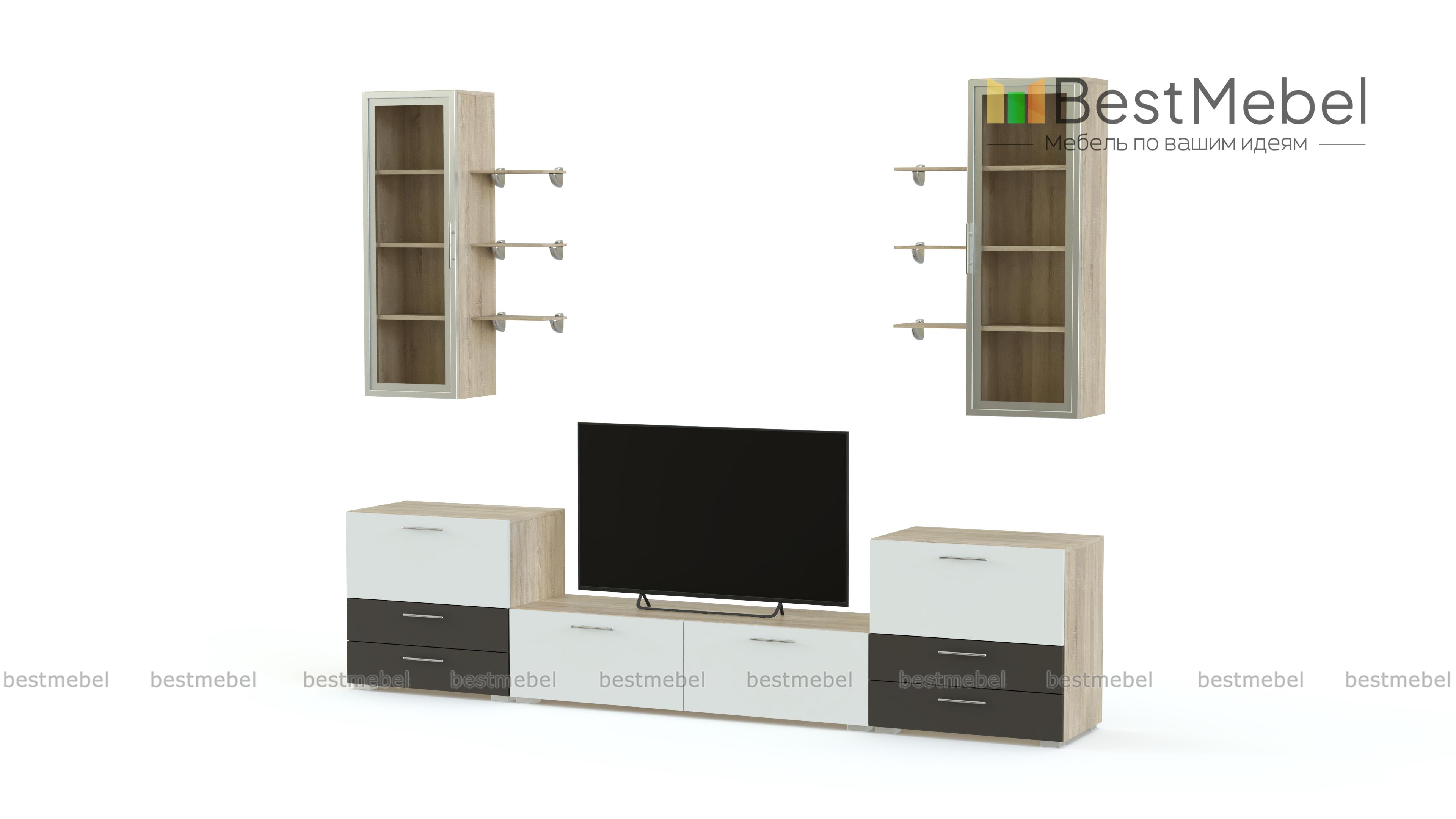 Стенка Грация 12 BMS не оставит равнодушными поклонников ярких современных дизайнов в стиле минимализм. Оборудовать эффектную и функциональную гостиную вам поможет комплект из лаконичных модулей – разноуровневой напольной тумбы и двух навесных витрин, совмещенных с открытыми полками. Фасады выполнены в контрастном цветном оттенке с эргономичной фурнитурой оттенка металлик. Купить стенку Грация 12 BMS, подобрав нужные параметры, приглашаем в наш интернет-магазин.