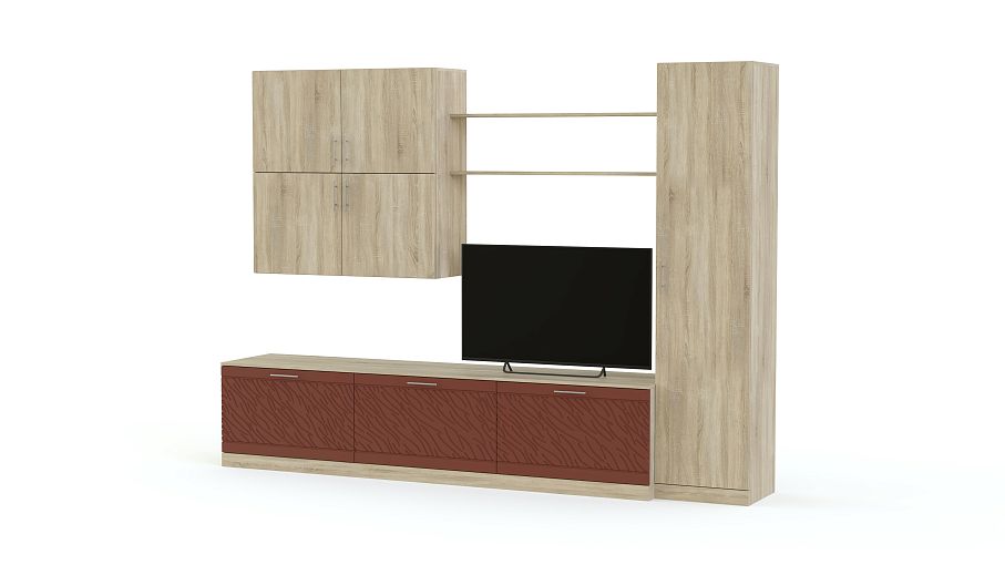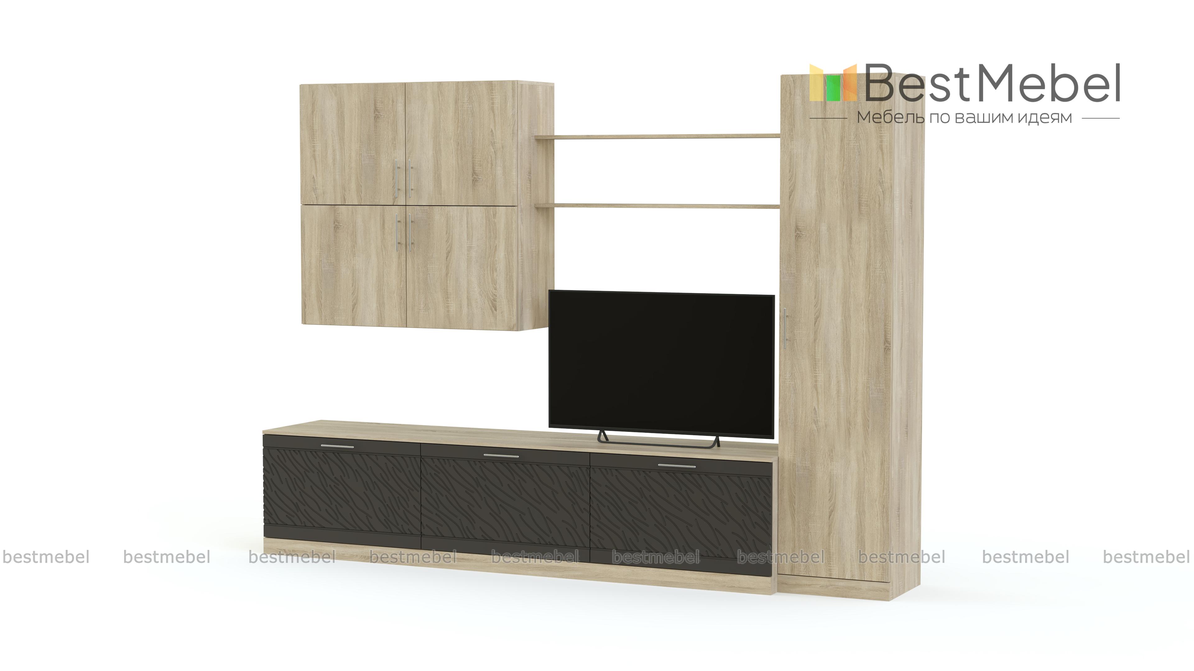 Стенка Вельвет 15 BMS станет отличным вариантом для небольшой уютной гостиной в современном стиле. Минималистичный дизайн входящих в комплект модулей придется по душе тем, кто предпочитает простые и функциональные решения. Стенка оборудована низкой тумбой под ТВ, бельевой колонкой, открытыми антресольными полками и навесным шкафчиком с распашными отделениями. Цветовое оформление – древесные оттенки и матовые поверхности с рельефным рисунком. Купить стенку Вельвет 15 BMS вы сможете по привлекательной цене в нашем интернет-магазине.