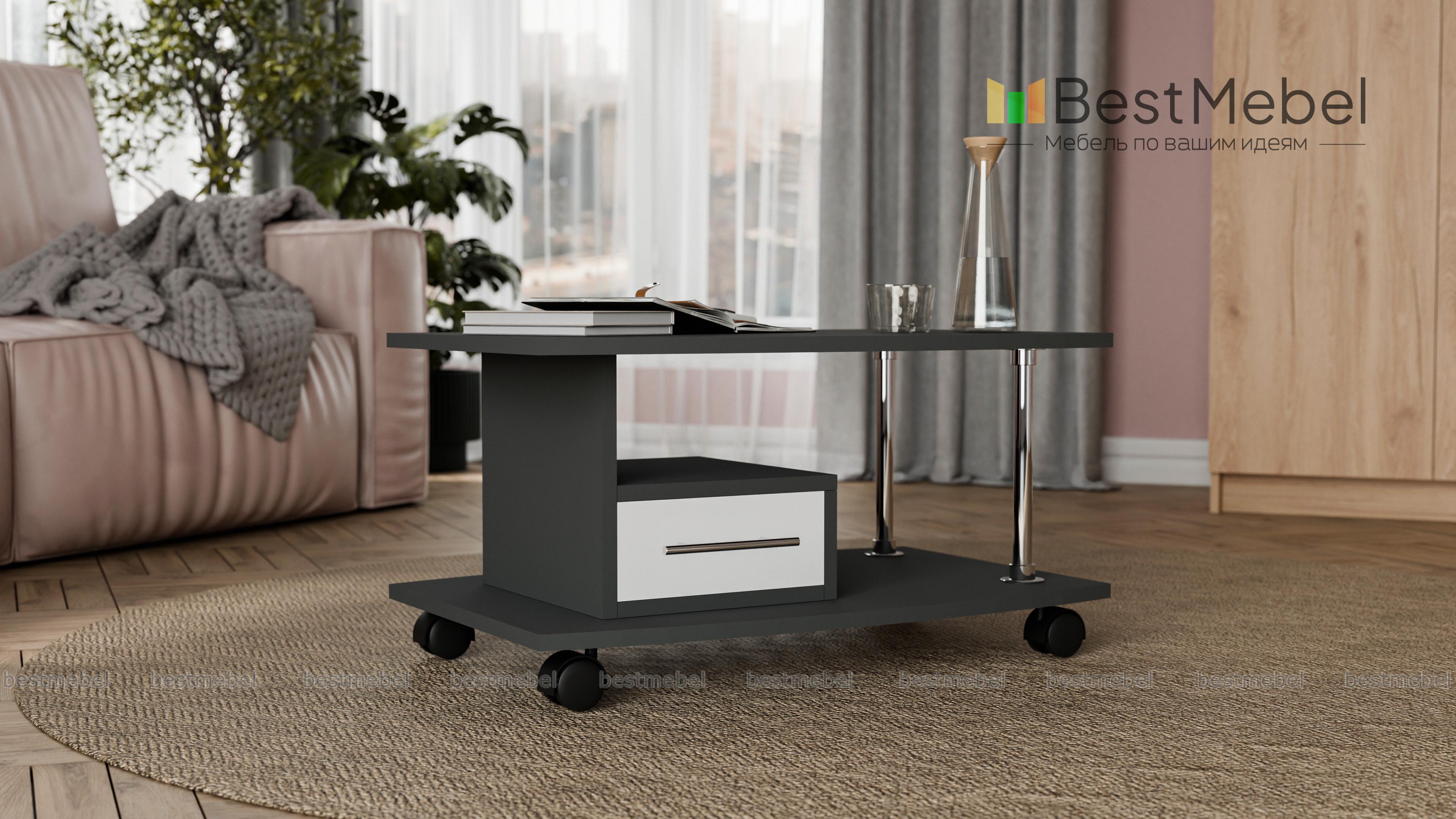 Журнальный столик Пример 162 BMS – это строгая геометрия форм и высокая функциональность, характерная для современных дизайнов. Модель оборудована широкой, чуть скругленной столешницей, основанием с колесными опорами для легкости перемещения и выдвижным ящиком, удобным для хранения мелочей. В оформлении гармонично сочетаются контрастные древесные тона и фурнитура оттенка металлик. Купить журнальный столик Пример 162 BMS приглашаем в наш интернет-магазин по демократичной цене.