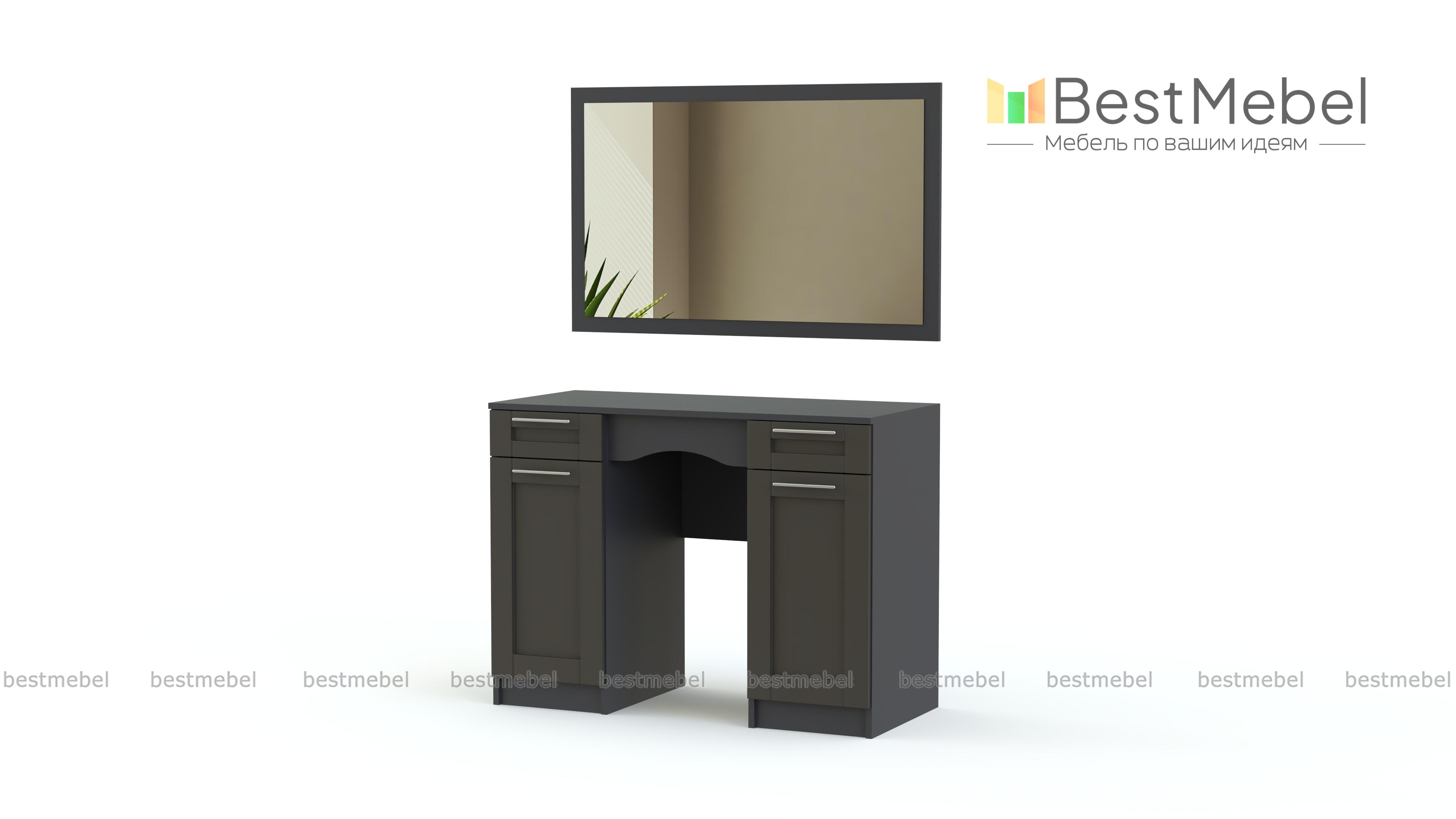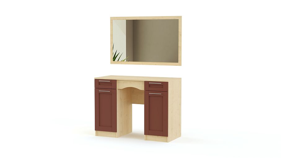 Туалетный столик СП-4566 BMS поможет разместить большое количество уходовых средств, декоративной косметики и важных мелочей благодаря своей продуманной комплектации. Модель, выполненная в трендовых древесных оттенках и декорированная классической фактурой фрезеровки, оборудована двумя выдвижными ящиками, двумя распашными отделениями с полками и широкой столешницей, у которой вы сможете с удобством расположиться во время нанесения макияжа или укладки волос, а навесное зеркало прямоугольной формы гармонично дополнит композицию. Купить туалетный столик СП-4566 BMS приглашаем в наш интернет-магазин.