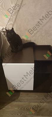 Тумбочка классная. Ничего лишнего. Однако при сборке выяснилось, что немного косо сделаны отверстия. Из-за этого сама конструкция получилось немного неэстетичная. Пришлось подколхозить чтобы было ровно. Надеюсь при следующей покупке подобного не будет
