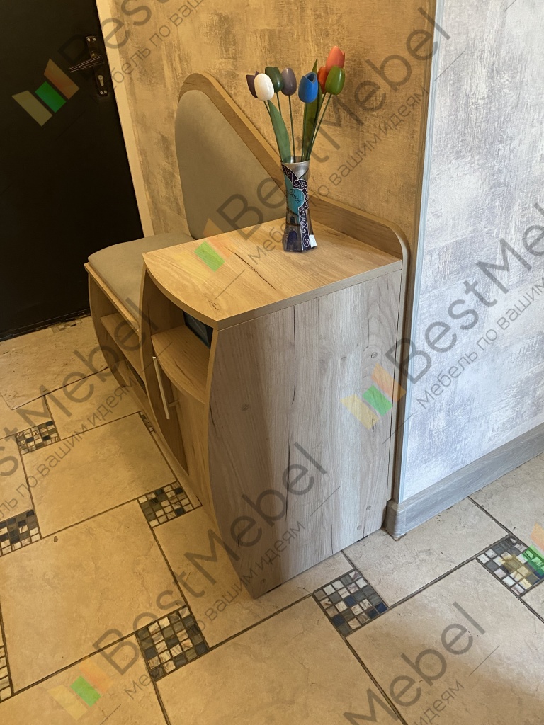 Очень красивая и удобная тумба для обуви. Выбрали цвет корпуса и обивки, а также размер, подходящие под нашу прихожую. Все изготовили в срок, аккуратно доставили и собрали.