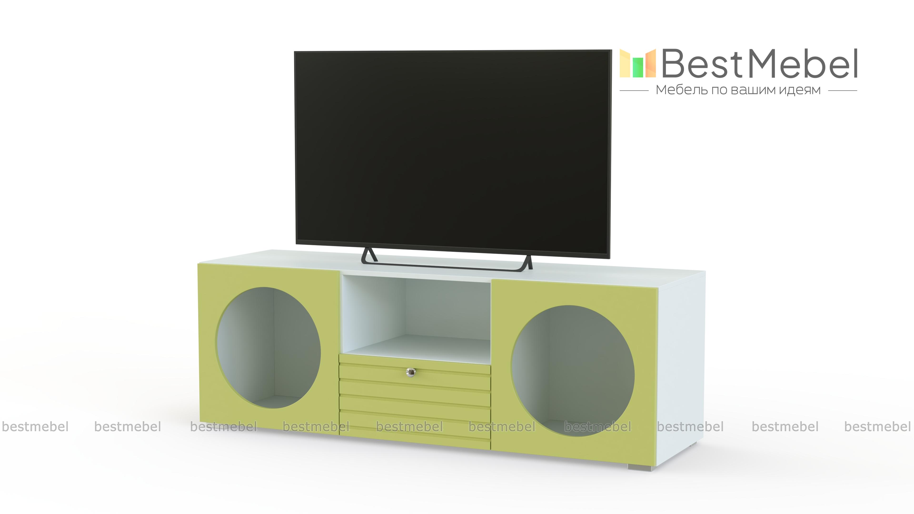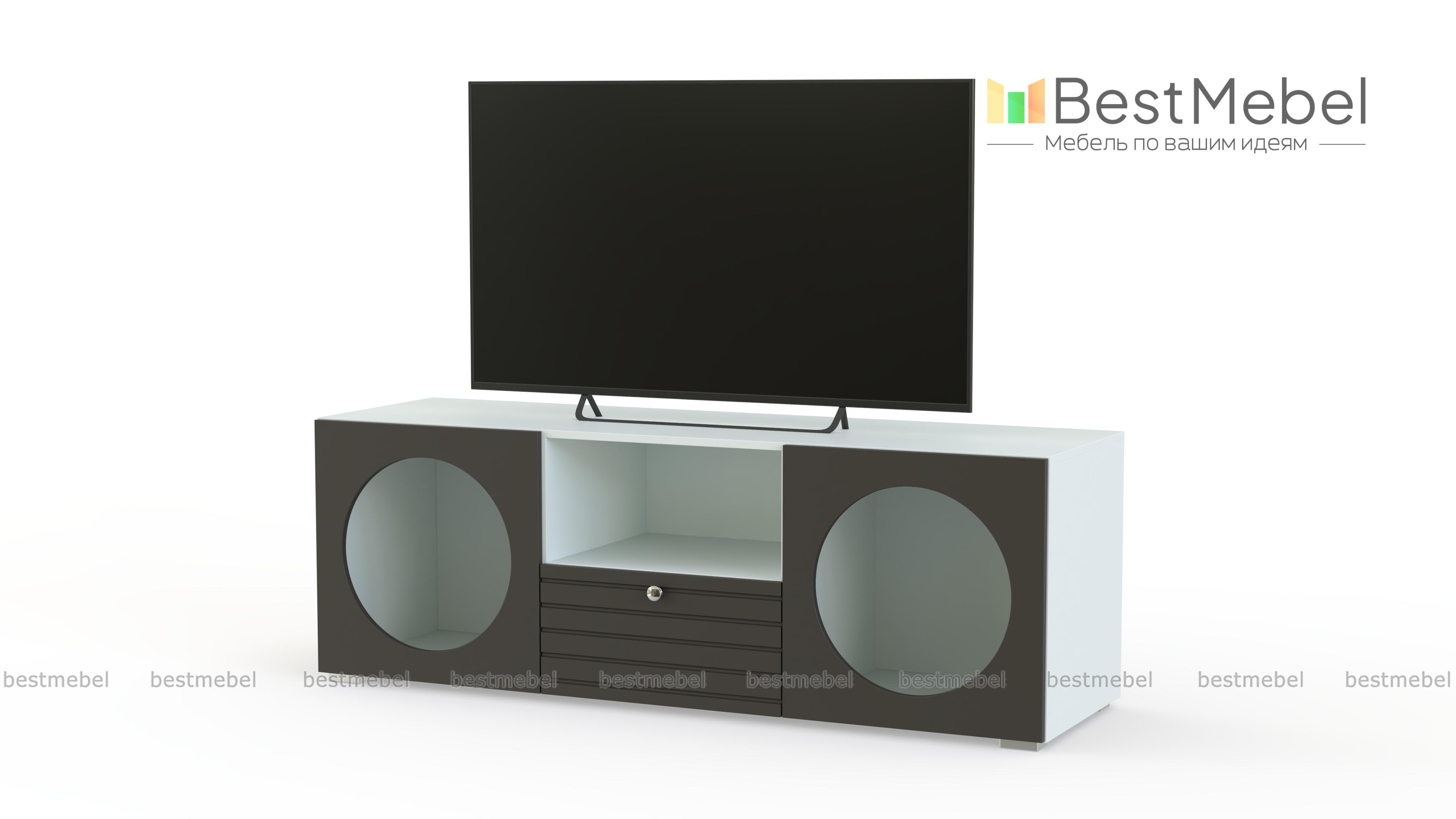 Тумба под ТВ Авелин 5 BMS — это стильная геометрия в отделке, оптимальные для небольшой квартиры размеры и удобный функционал. Ниша для мелочей и фрезерованный выдвижной ящик в центре тумбы дополнены двумя просторными секциями с круглыми вырезами. Необычные открытые полки идеальны для размещения книг и пластинок, посуды и интерьерных украшений. Купить тумбу под ТВ Авелин 5 BMS вы сможете в нашем интернет-магазине с размерами, фурнитурой и цветовой гаммой на выбор.