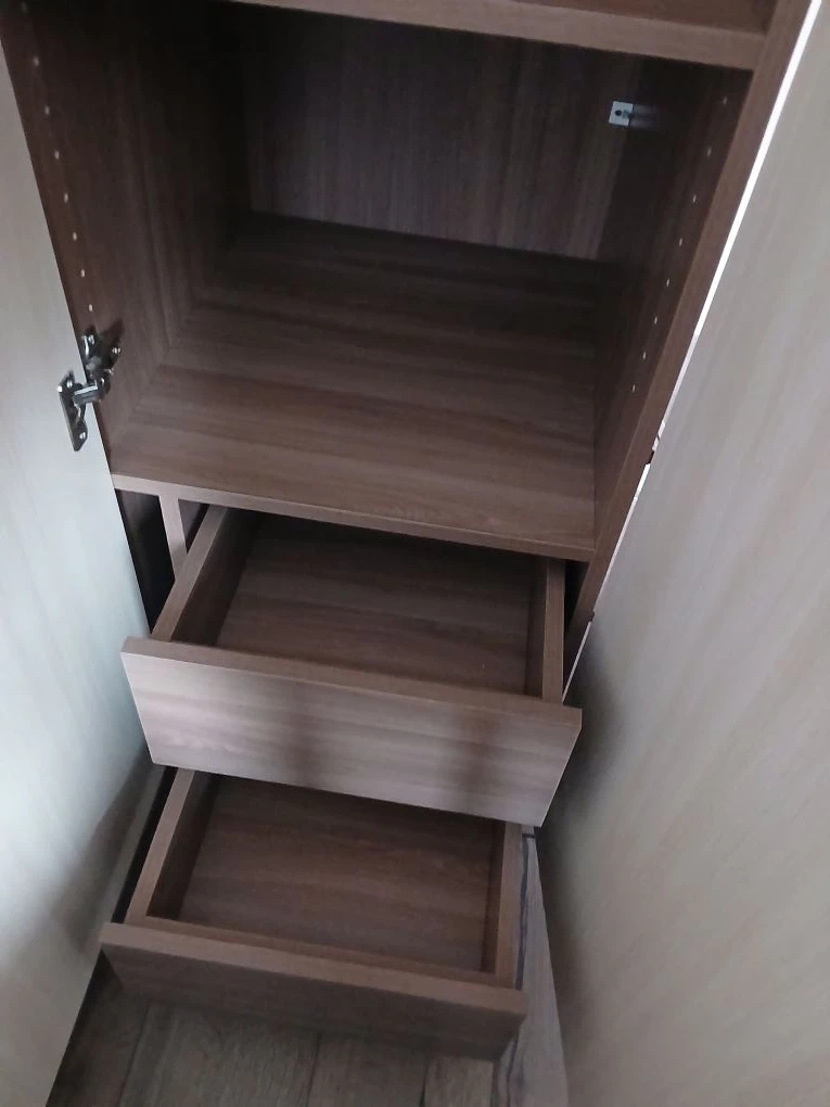 Заказ 00000358225 Обставлял комнату в однушке,естественно места мало. Нужна была гостинная, не просто пара полочек и тумба под ТВ, а полноценная стенка. Чтоб и бельё убрать и одежду повесить. Гостинная Прага отличный вариант. Пенал под бельё и вместительный платяной шкаф. И дизайн интересный, пенал менее глубокий чем вся остальная гостинная, ящики подвесные, крыша общая, так оригинально.  Можно менять размер и по длине и по высоте, можно отзеркалить . Что интересно пляшут от телевизора, выбираешь размер ниши под ТВ и потом подгоняются размеры Шкафов под общий размер гостинной. Поэтому сразу определяйтесь с размером телевизора. Сделали быстро, привезли без проблем, всё хорошо упаковано. Собирал сам. Фурнитуры отсыпают с запасом, остались винты, шурупы, заглушки это очень правильный подход, фабрике респект. Заказал заднюю стенку из ЛДСП в цвет корпуса, всем рекомендую, хоть и дороже, но очень облегчат  сборку и шкафы более монолитные что ли. Единственная просьба к производителю, сделайте инструкцию более подробную, пошаговую. Не всегда понятна последовательность сборки.