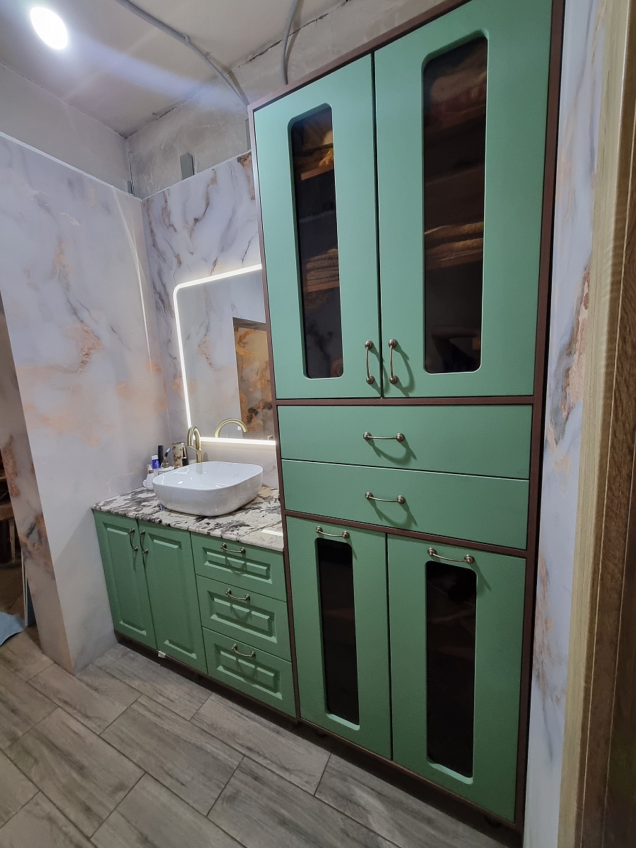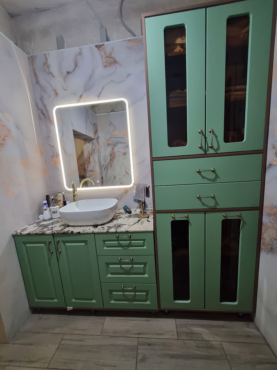 Приобретали пенал по своим размерам. Очень довольна выбором. Изделие очень качественное, красивое и удобное. Заказ 00000275050, изделие ЭСКИЗ Пенал для ванной Ромира 30 BMS (750х2200х520)