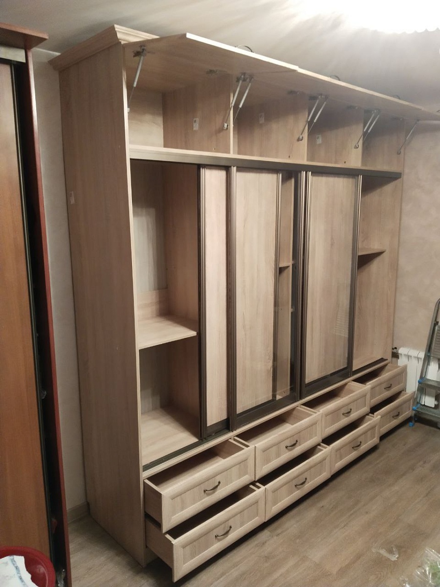 Давно хотел купить вместительный комод,но большинство комодов не подходили мне по размерам,либо расцветка не подходила к интерьеру.И тут,вновь обратившись к поиску,зашёл на сайт bestmebelshop.by и увидел подходящее изделие,к тому же все нужные размеры,цвет,материал изготовления, комплектацию можно выбирать самому,что оказалось весьма кстати.Составил мой будущий комод прямо на сайте и отправил запрос.Вскоре перезвонил оператор и уточнил некоторые детали.Время на изготовление и доставку определили и уложились в это время в срок.Доставка прошла безупречно,изделие в трёх упаковках было доставлено без повреждений.Далее предстояла сборка.Распаковав все упаковки,испугался множества мелких деталей,но благодаря хорошо исполненному чертежу и безупречному изготовлению самих деталей и точной разметке на них,сборка прошла без особых затруднений.Фурнитуры хватило с запасом.Не было такого,чтобы чего-то не хватило.Комод оказался большим,высоким и вместительным,как я и хотел.Качеством всех изготовленных деталей и собранным изделием остался доволен.Большое спасибо всей команде!