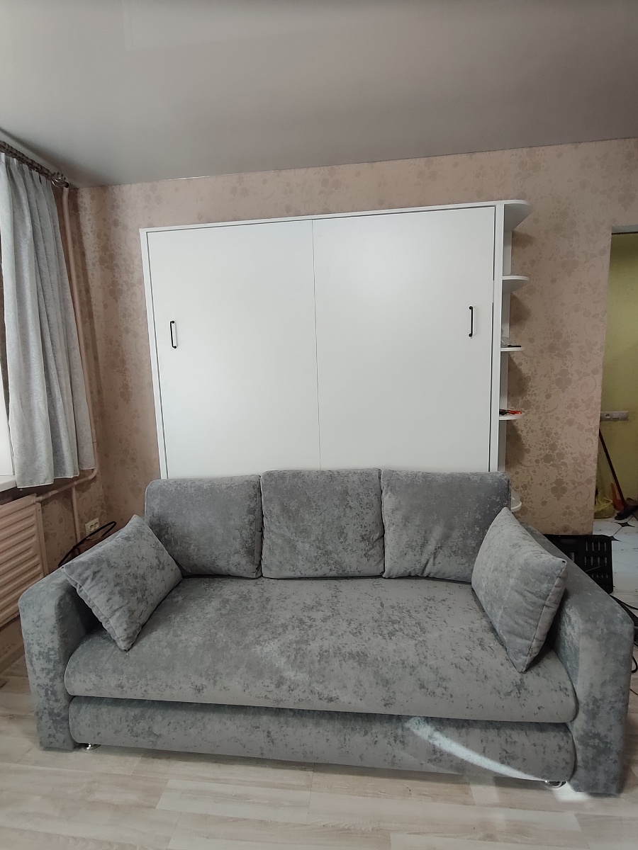 Собирали долго, крепежа было с лихвой, ещё осталось. Да, инструкция оставляет желать лучшего, если бы не опыт мужа, не знаю на сколько это бы растянулось. Просила сделать полки с другой стороны -сделали. Получилось шикарно! Я , девушка, особо не напрягаясь могу сама собрать и разобрать. И да, с диваном не очень удобно, подушки убирай, собирай, поэтому диван мы сделали как отдельно стоящий у соседней стены.