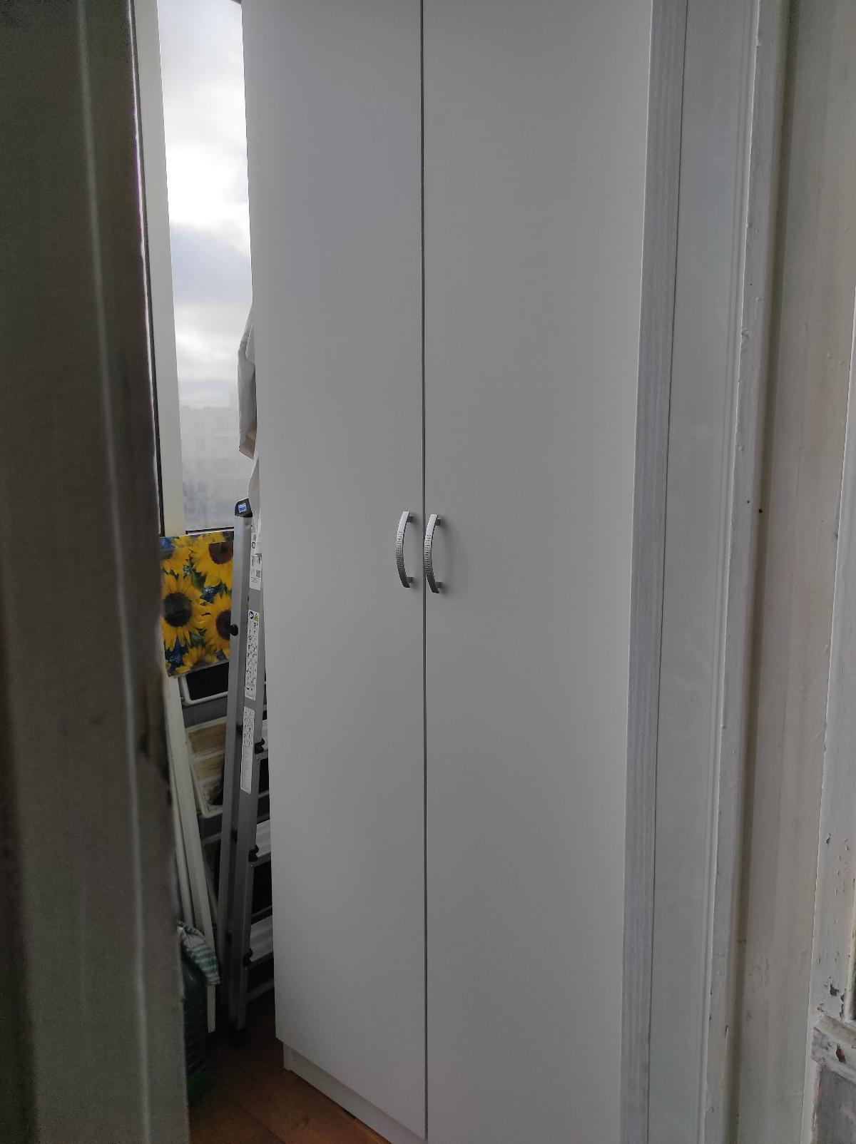 Заказ 00000577965.Выбирал шкаф на балкон. По соотношению цена-качество шкаф подходит на 100%. Собирал на сайте, как конструктор. Время от момента заказа до доставки 5 дней. Привезли в заранее оговоренное время, все четко и быстро. За время эксплуатации шкафа с января по настоящее время, недостатков не обнаружил. Балкон застекленный, но не отапливаемый. Нигде не перекосился, не скрипит. Рекомендую к покупке.