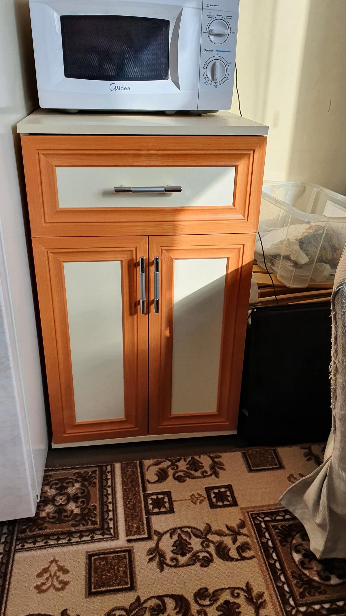 На Новый год сделали себе подарок - заказали этот столик. Удобно, что здесь на сайте можно смоделировать свой, индивидуальный столик, подходящий тебе по цвету и размерам. Решили сделать чуть подлиннее, чем стандартный. Теперь на нем можно одновременно и поработать, и чай попить - места предостаточно. А вечером легким движением руки столик на своих колесиках отправляется спать к стенке. Кстати, очень долго искали такую небольшую модель на колесиках и нигде не могли найти. Спасибо за быстрое и качественное изготовление! Заказ 00000576651, изделие Стол компьютерный Костер 1 BMS (900х750х450).