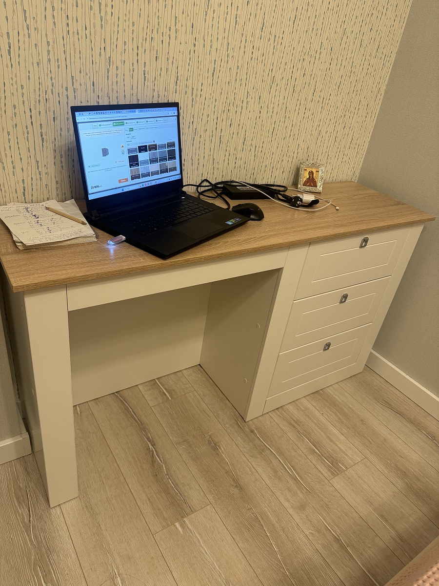 Столик долго выбирала , сделали по индивидуальным размерам (1400/75/40гл) столешницу выбрала другого цвета (дуб Сонома) классно смотрится. Корпусг белый, фасады мдв шагрень. Девушка консультант (вроде Полина) скинула фото сочетания помогла определиться с цветом. Спасибо ей большое , результатом довольна. Муж собрал сам, пришлось повозиться (схема сборки конечно никак икеа, но рукастый соберет )