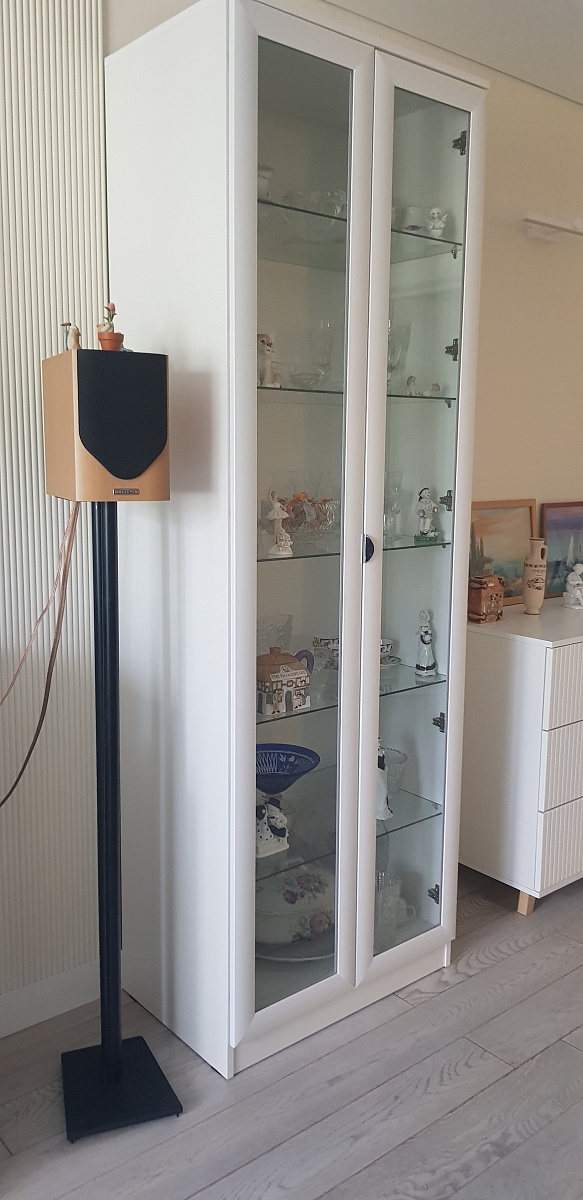 Заказ 00000160431 и 00000131738. Заказал две витрины по разным размерам и одному дизайну.  Вторую немного шире, так как первая стоит в паре с пеналом. Получается очень неплохо. Качество понравилось. Изготовление и доставка быстрые. Упаковка качественная. Всё собрал сам без проблем.