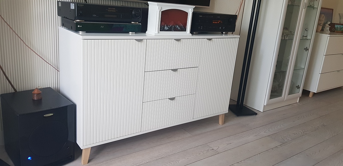Года два или три, наверное, я всё не решалась заказать себе тумбочку под ТВ. Важно было подобрать размер и тут "о, чудо" это можно сделать!Выбрала я конечно не совсем тумбочку и как потом поняла ещё и не на ножках. Но этот вопрос оказался решаемым))Из минусов заказа:1. Нет на сайте схемы, пришлось расспрашивать по телефону.2. Не точное время доставки.3. Рейтинг товара 5, отзывов нет. Странно.4. При смене фасада с МДФ на ЛДСП что-то сумма меньше не стала)))) 5. Кромка не аккуратно сделана. Что-нибудь придумаю.6. Оказалось не мало деталей со сколами.7. Несколько поврежденных наклеек было тяжело убрать, клей пришлось снимать специальным средством, но хорошо снимались не повреждённые наклейки.Плюсы:1. Возможность сделать по своим размерам. У меня были 1730×600×400. Могла выбрать цвет и комплектацию.2. Несколько раз созванивались с менеджером, обговорили все детали, была выслана схема для утверждения. Моя душа успокоилась.3. Оплата по выбору. Можно и наличными и онлайн. Это здорово!4. Доставка. Ребята молодцы. Хоть нам и сказали другой день))) но они приехали на следующий, сами заехали, нас подождали, всё выгрузили. Вежливые, оставили о себе очень хорошее впечатление. 5. Есть схема сборки. Каждая деталь промаркерована и это очень удобно.6. Собирать легко. Собирали вдвоём с дочкой. Мы любители головой подумать и руками поработать))) Так что нам как игра была собрать этот комод-тумбу. Но было бы всё не так радужно, если бы не было всё вымерено чётко и правильно. Собралось всё без всяких погрешностей! Благодарю тех, кто воплощал в жизнь этот проект. Всё отлично получилось. Прикрепляю фото нашей совместной с вами работы. Удачи вам!