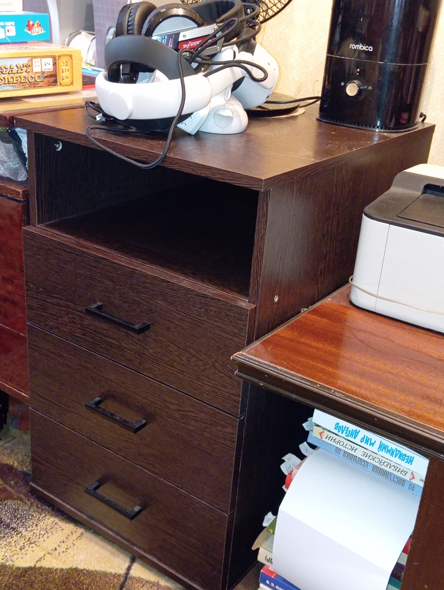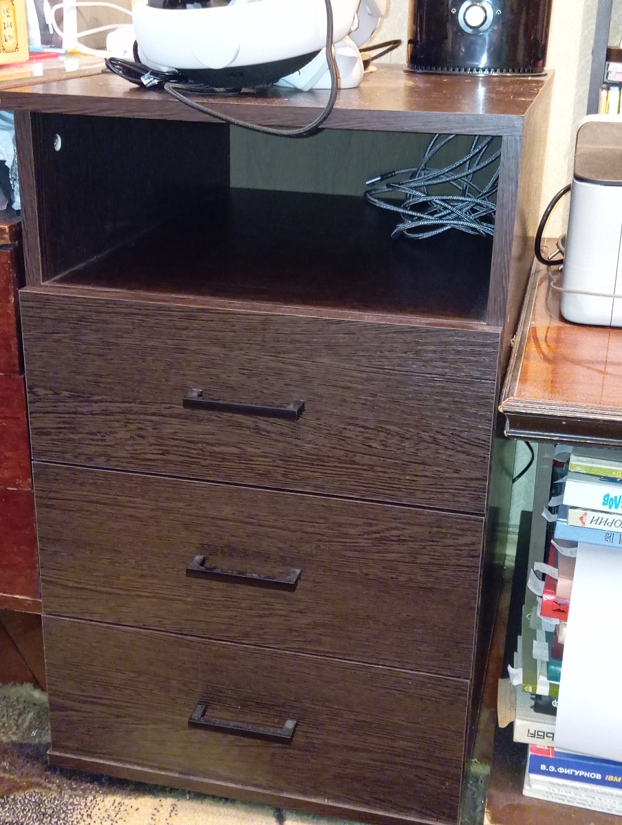 Заказ №00000997039. Размеры тумбы соответствуют заявленным на сайте. Ящики выдвигаются тихо, без грохота. Свою функцию хранения тумба выполняет отлично. Привезли, собрали. К покупке рекомендую.