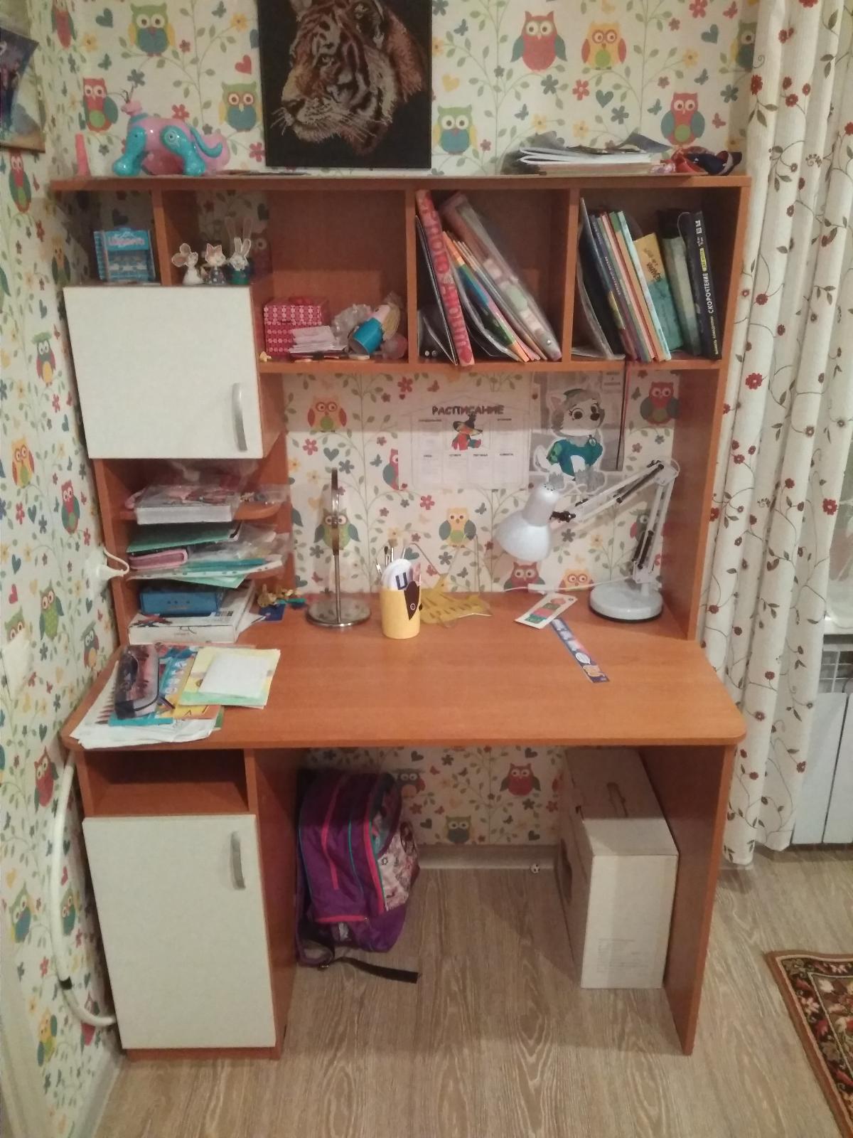 Стол отлично подходит для школьника. Нужное количество полок над головой, удобный шкафчик с дверкой. Само качество стола - на отлично. Никаких сколов, царапин.. Изготовили по нашим размерам - и это главный плюс данного магазина, при этом цена, как за индивидуальный заказ, не возрастает до небес. Само изготовление стола и доставка - все в пределах оговоренных сроков. Собирали сами, все просто и понятно.  Будем обращаться еще к данному магазину при выборе мебели.