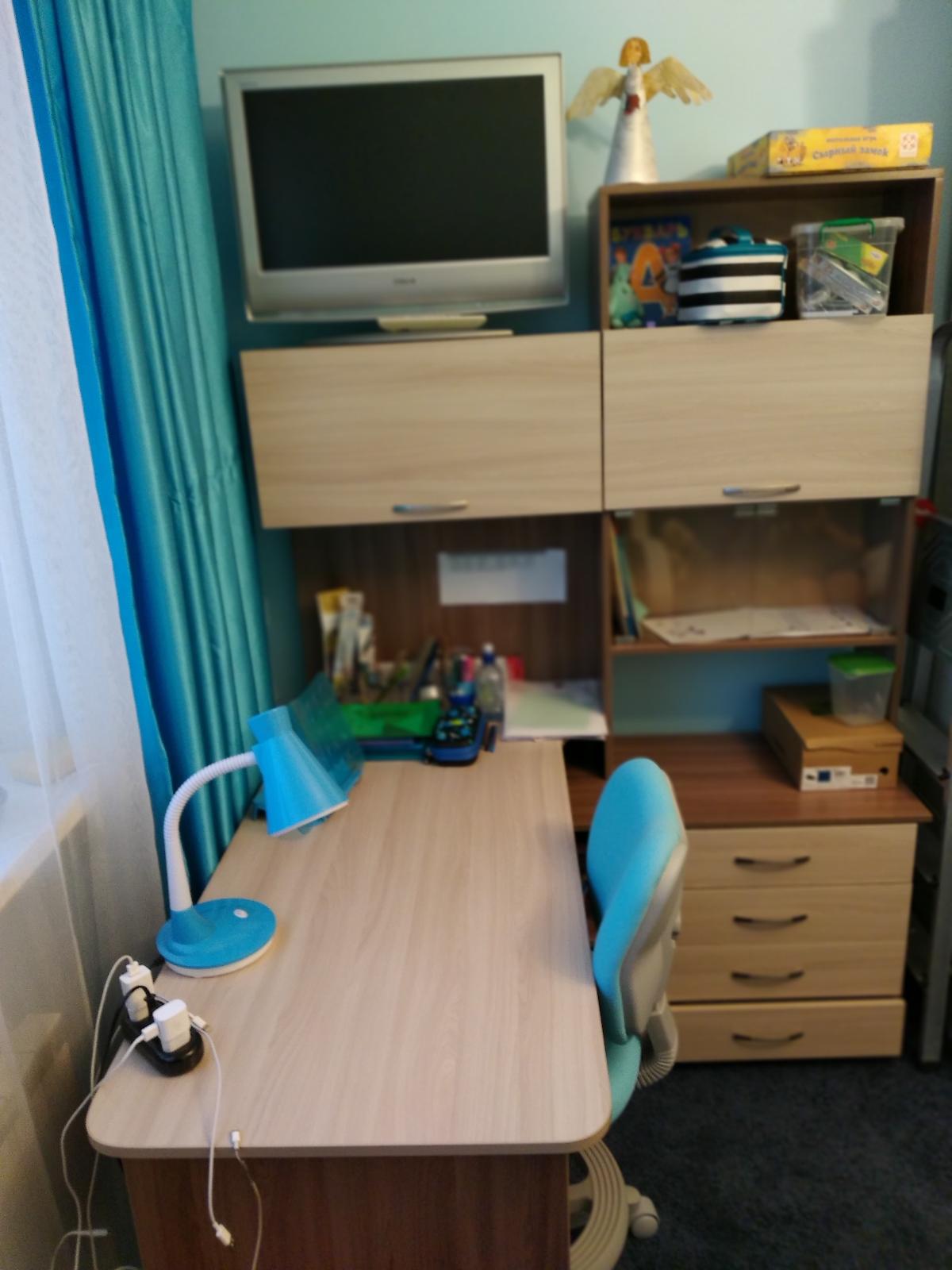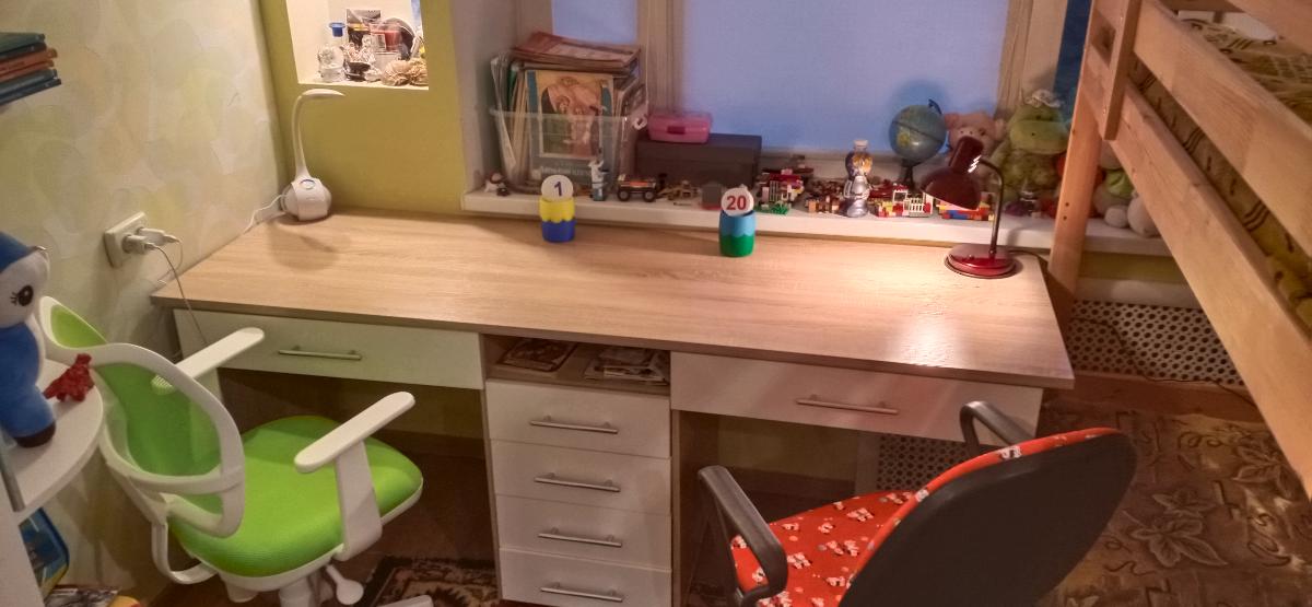 Прекрасный стол для двойняшек. Единственный сайт, где удалось максимально адаптировать изделие под интерьер. Был выбор длинны и ширины столешницы. Варианты фасадов. Вариантность всех деталей - дала возможность максимально комфортно вписать стол в существующий интерьер. Прежде, чем сделать заказ на Best Mebel, пересмотрели массу других сайтов, рассматривали изготовление стола на заказ. Очень довольны. Используем стол уже 5 месяцев. Все прекрасно.