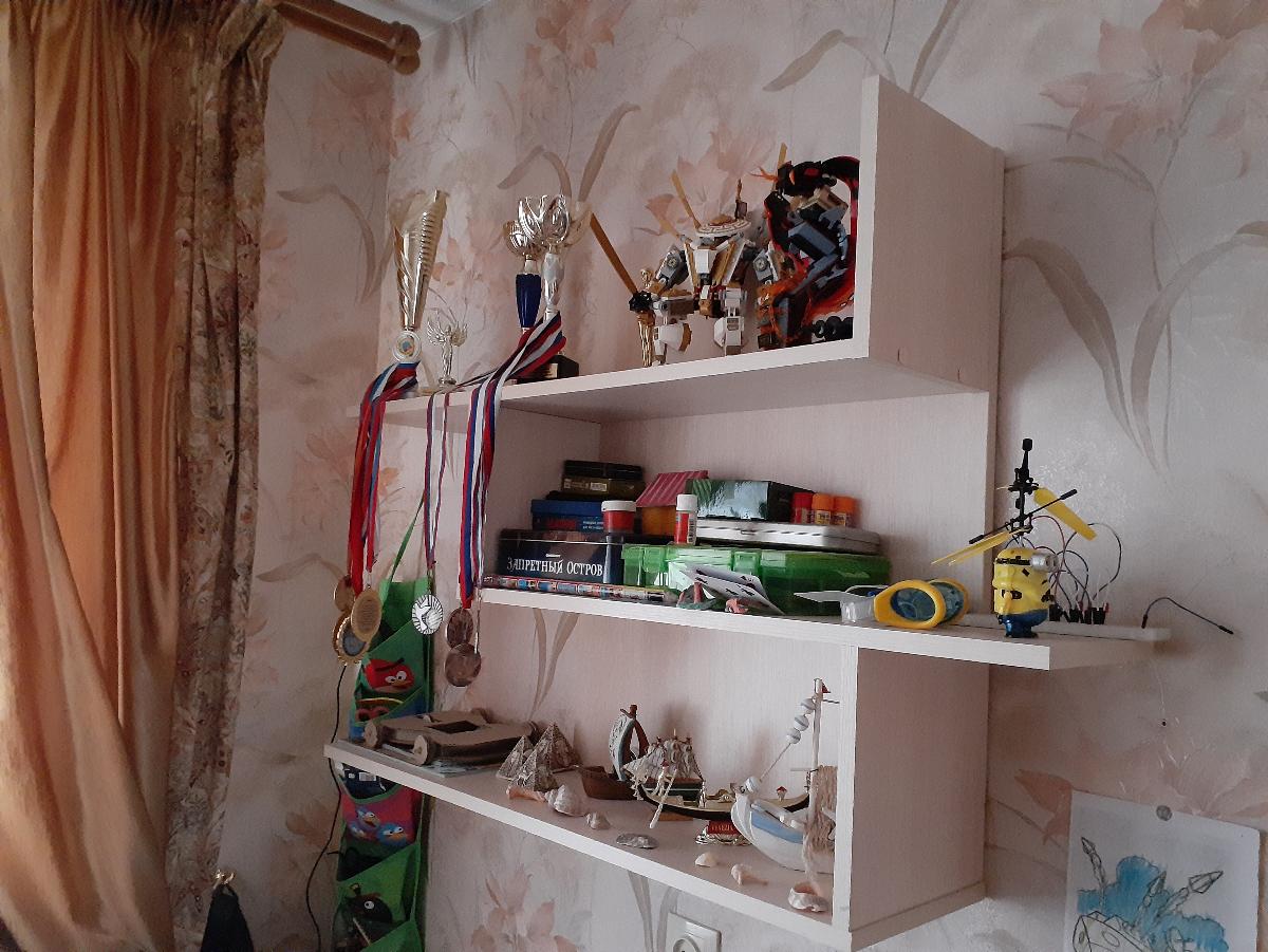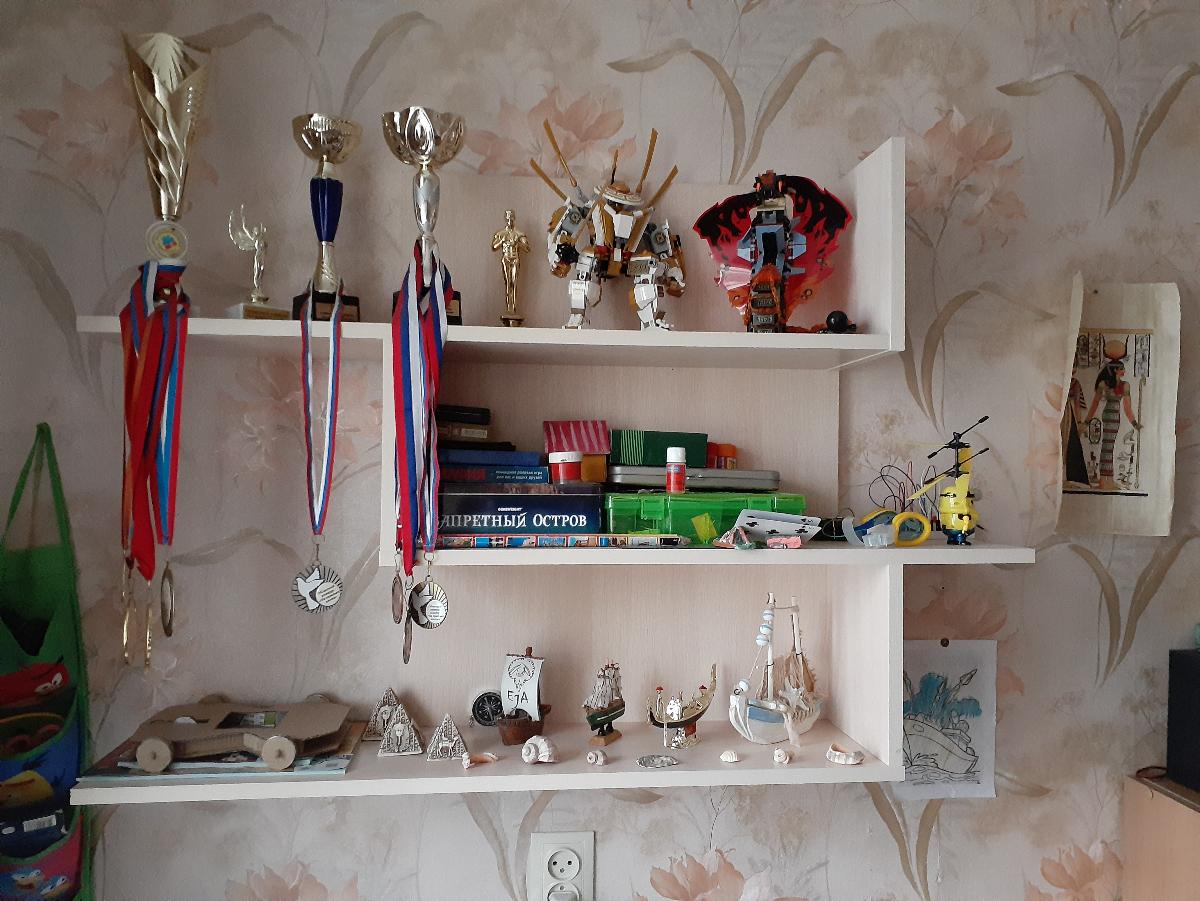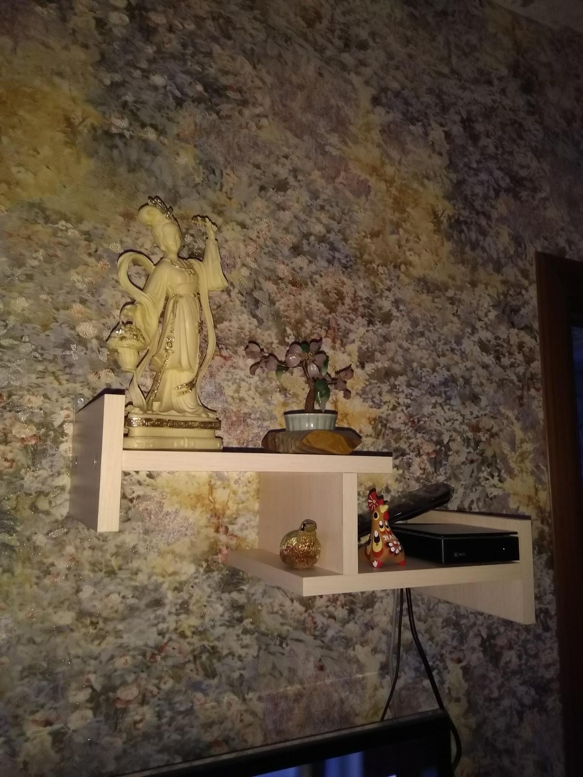 Полка досталась в подарок. Красивая, вместительная, приятно освежает интерьер.