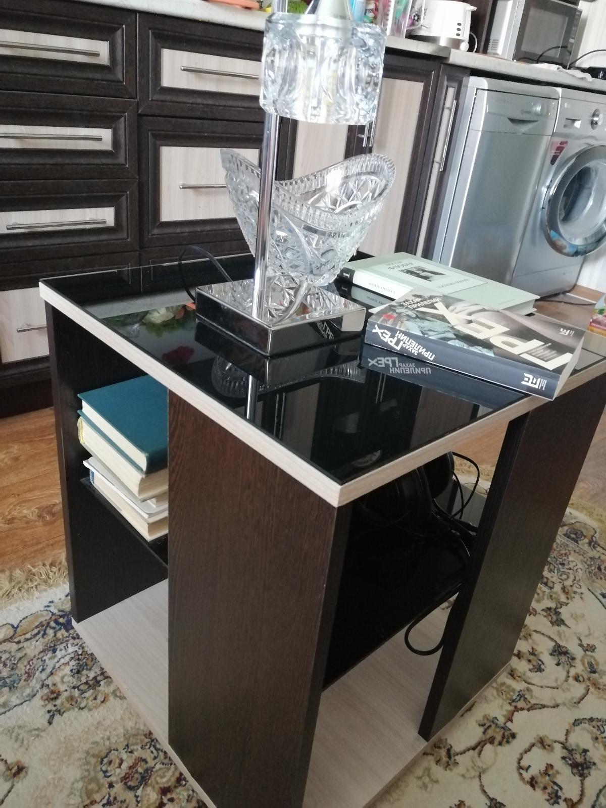 Долго искали небольшой функциональный столик на колёсиках, чтобы поставить возле дивана на кухне. Понравился столик на Бест-мебель. Хорошо, что можно комбинируя, подобрать цвет под нашу мебель. Ещё понравилась стильная стеклянная столешница любого цвета, на которую можно, не опасаясь, поставить горячее. Мы выбрали чёрный цвет столешницы. Столик вместительный, можно положить и книги, и др. (Заказ №00000374313) Спасибо Бест-мебели!