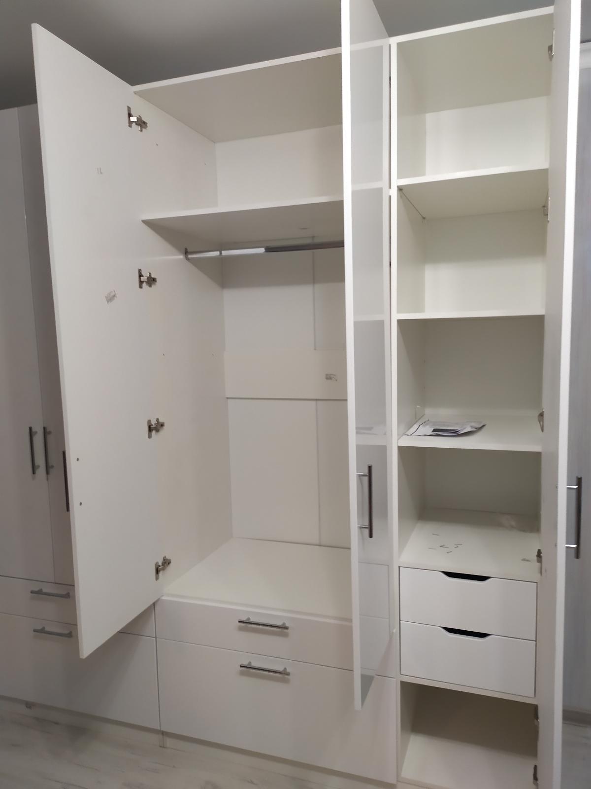 Сама по себе хорошая модель. Вместительный шкаф. Выбрала его из-за многочисленных ящиков. Брали без зеркал, немного изменили размеры. Но нам немного не повезло. Центральные двери были с браком. Проблему решили. Через неделю получили новые. Повторно сборщиков вызывать не стали. Устанавливали своими силами.